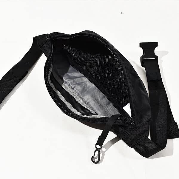 財布や携帯電話など、日常の身の回りの小物の収納に便利な1リッター容量のスリムなウエストバッグ