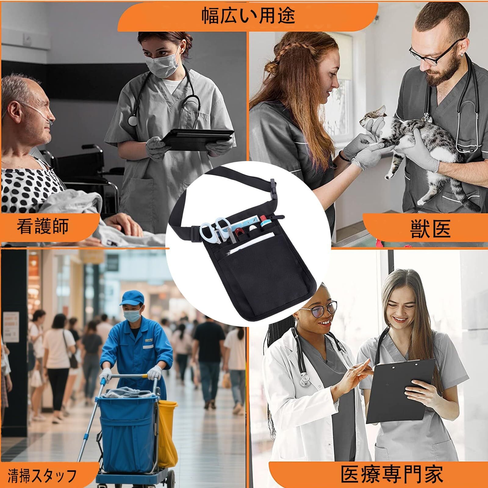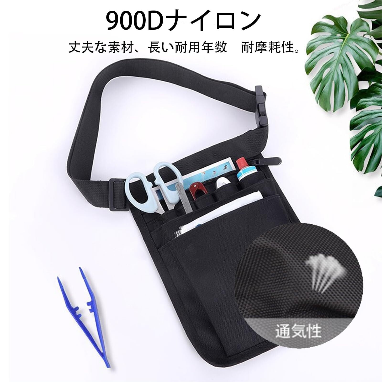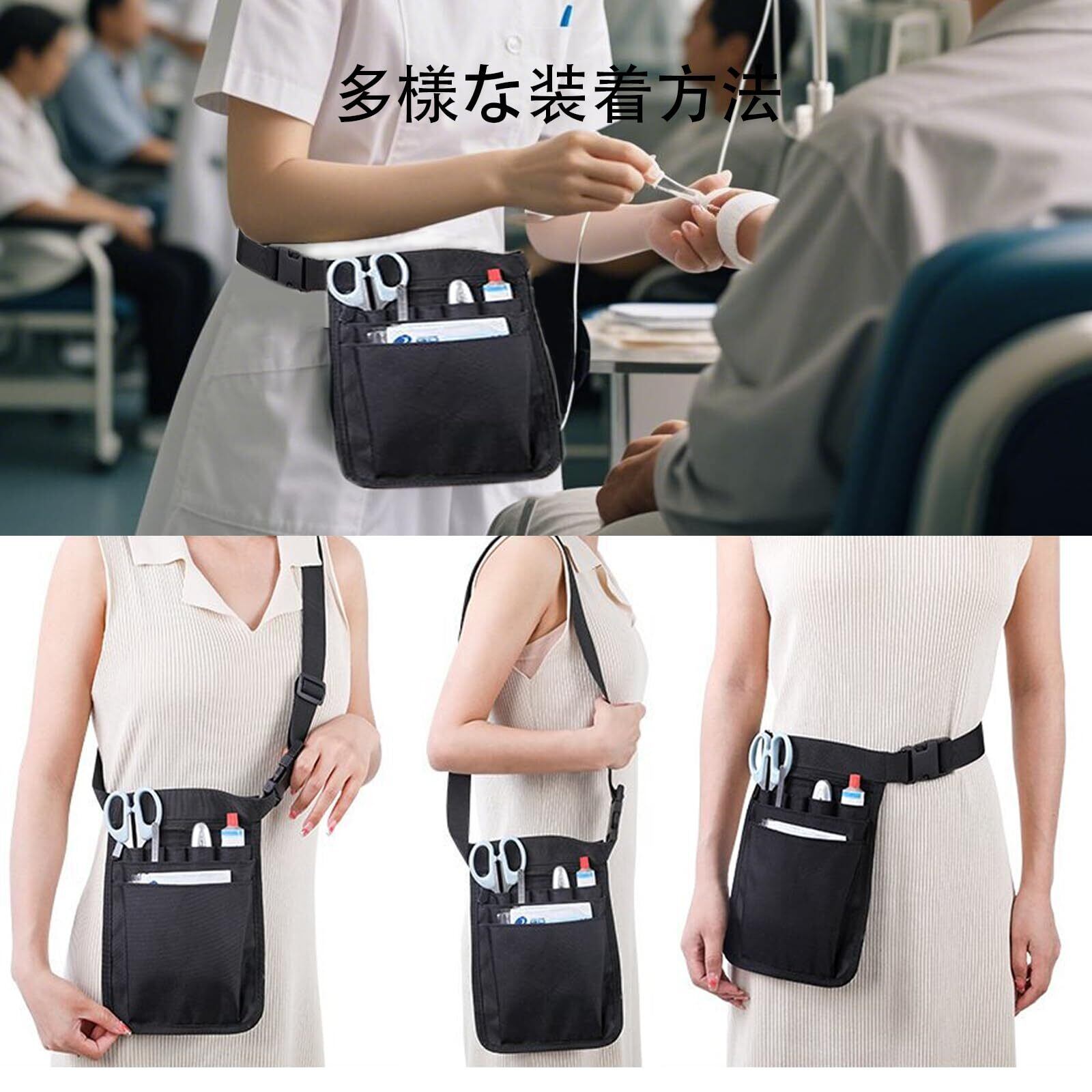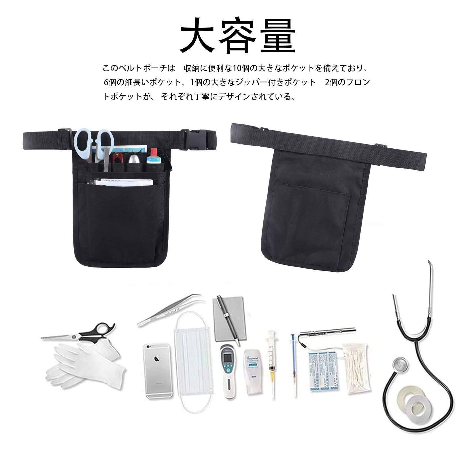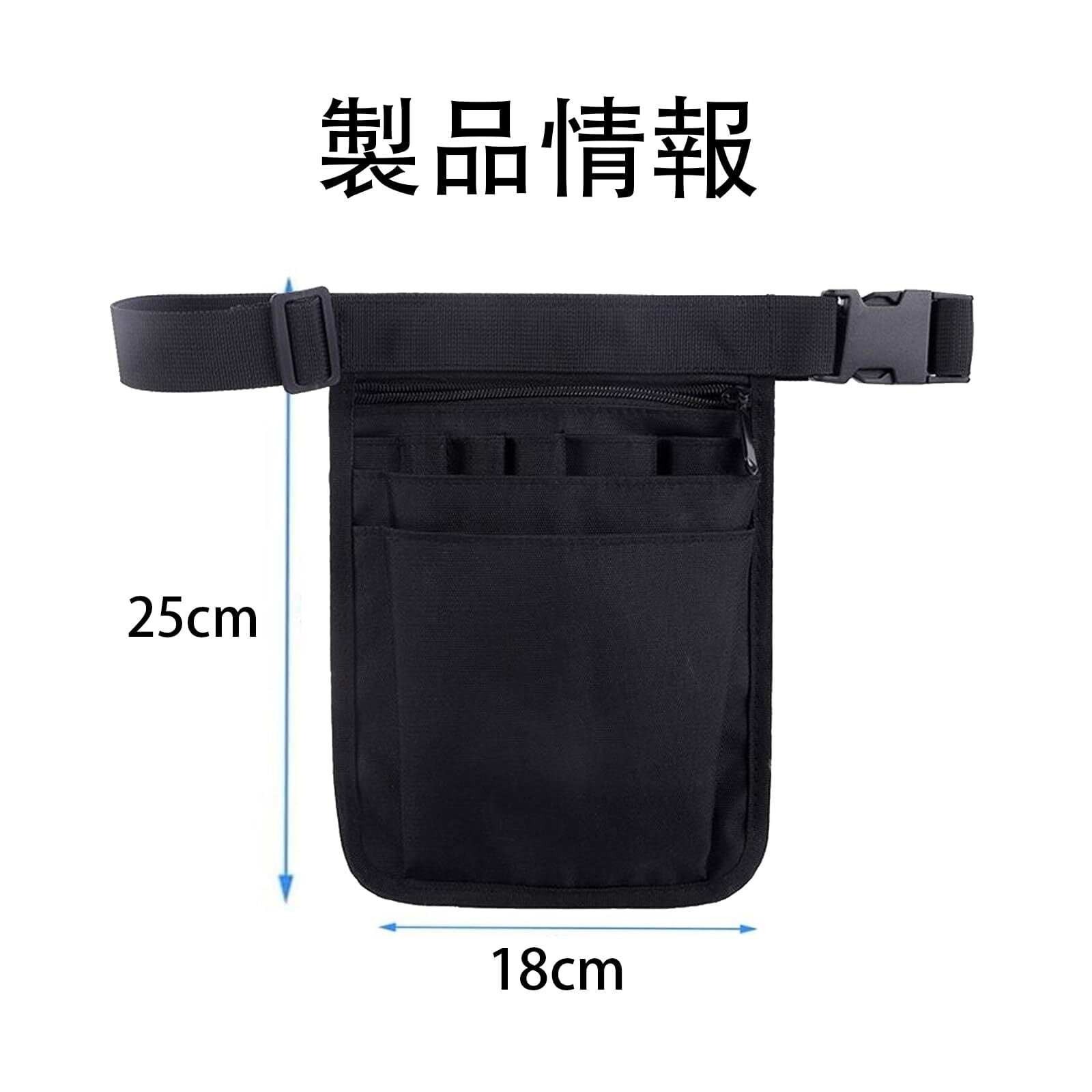 ナースポーチ トポーチ 仕事用 文具ポーチ 美容師 仕事用 小型 防水 軽量 耐久性 防水 多機能 調節可能 ベルト付き (ブラック) FineGood