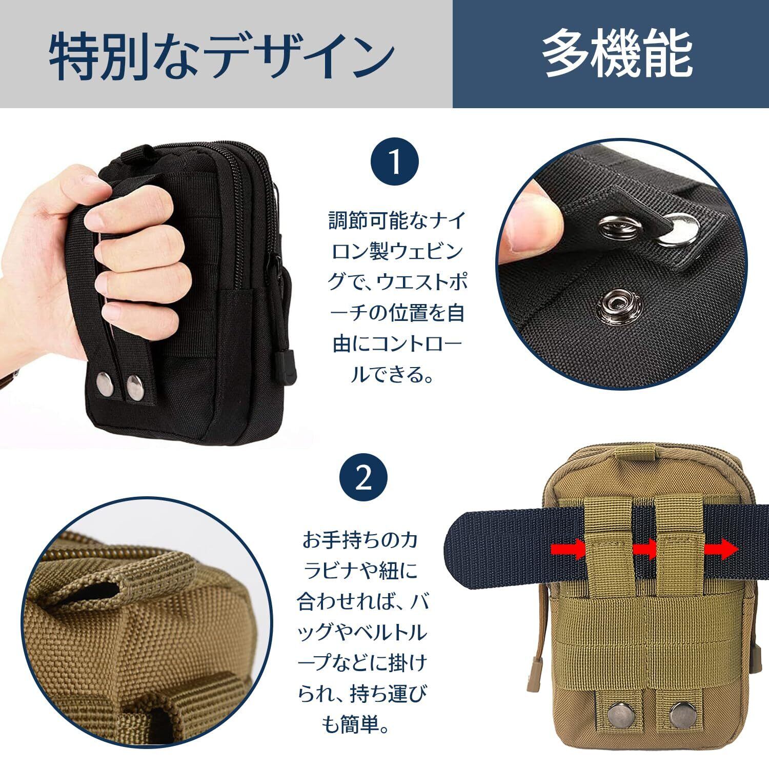 ベルトポーチ 作業用 多機能ポーチ 3色 防水設計 アウトドア 登山 キャンプ 探検 工具収納 携帯便利 男女兼用