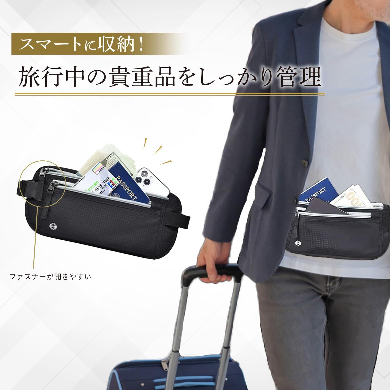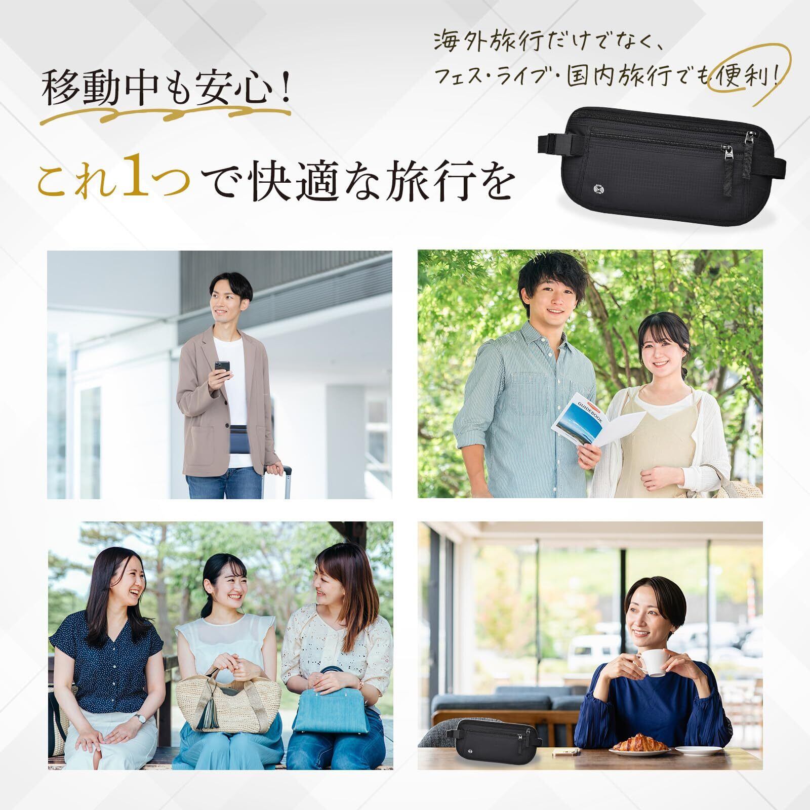 【収納力と機能性】パスポート、スマホ、カード、現金を整理して収納できる多機能設計。旅行、ランニング、防犯用に幅広く活躍。