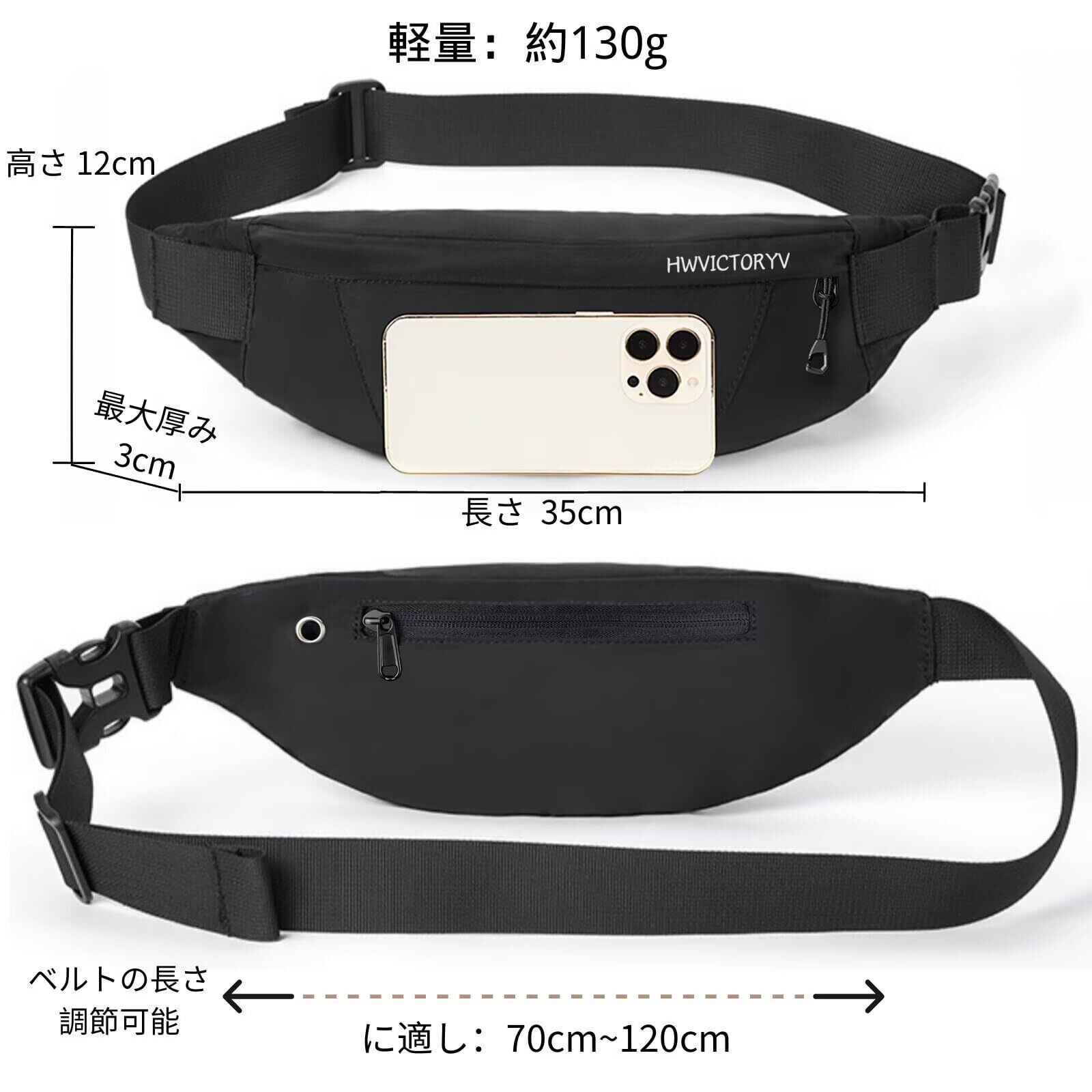 【仕様】サイズ:35cm×12cm×3cm;軽量:約130g;調整可能なベルト: 70cm~120cm。