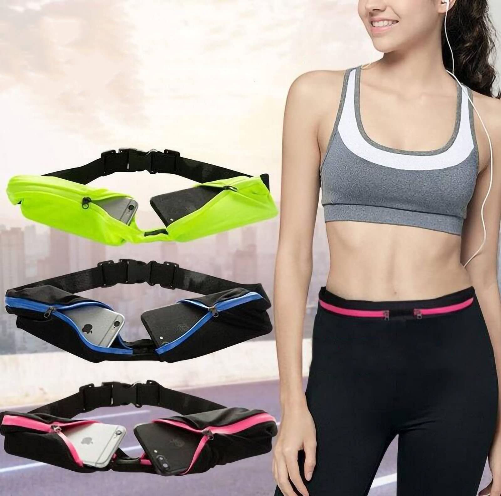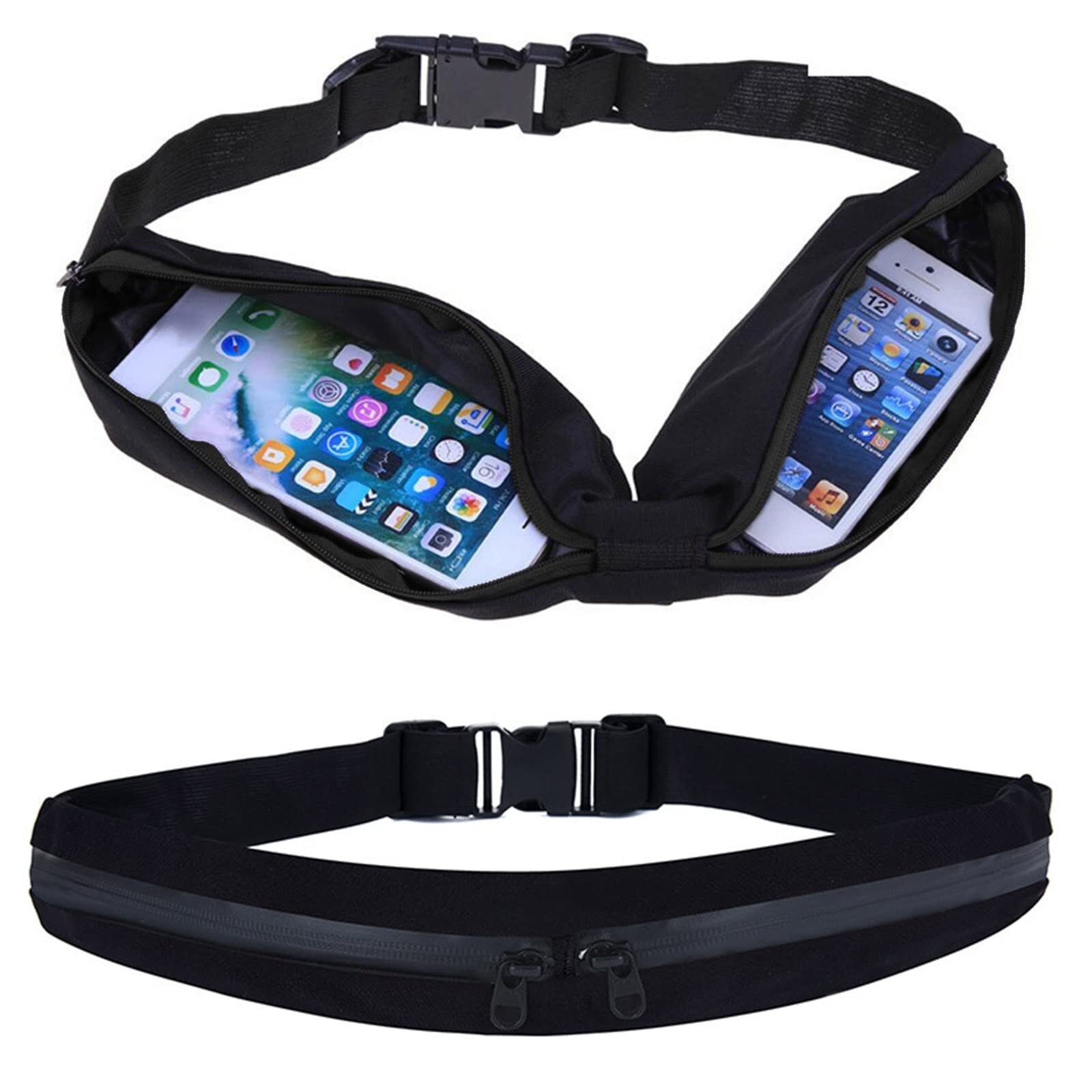 【BEAUTY PLAYER】ランニング ポーチ ウェストポーチ フリップベルト 2ポケット 大容量 軽量わずか46g 小物ポーチ 伸縮性あり 軽くて薄い ジョギング マラソン ジム対応 バレンタインや父の日のプレゼント スマホ収納可能 (Black)