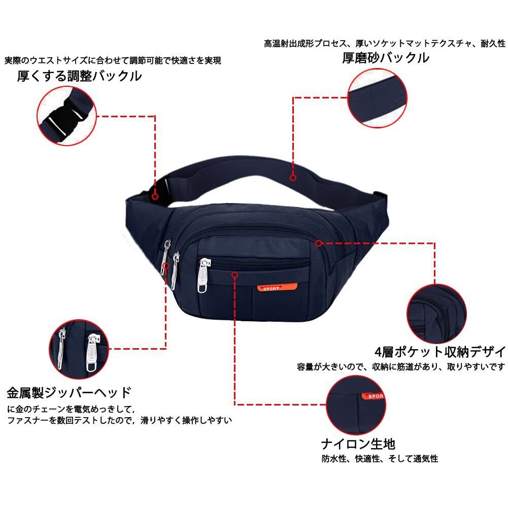 HLYouleni ウエストポーチ多機能 ボディバッグ メンズ ウエストバッグ レディース 収納 大容量 ヒップバッグ 4ポケット防水 ランニング ポーチ 旅行 登山 散歩 仕事 作業用 財布