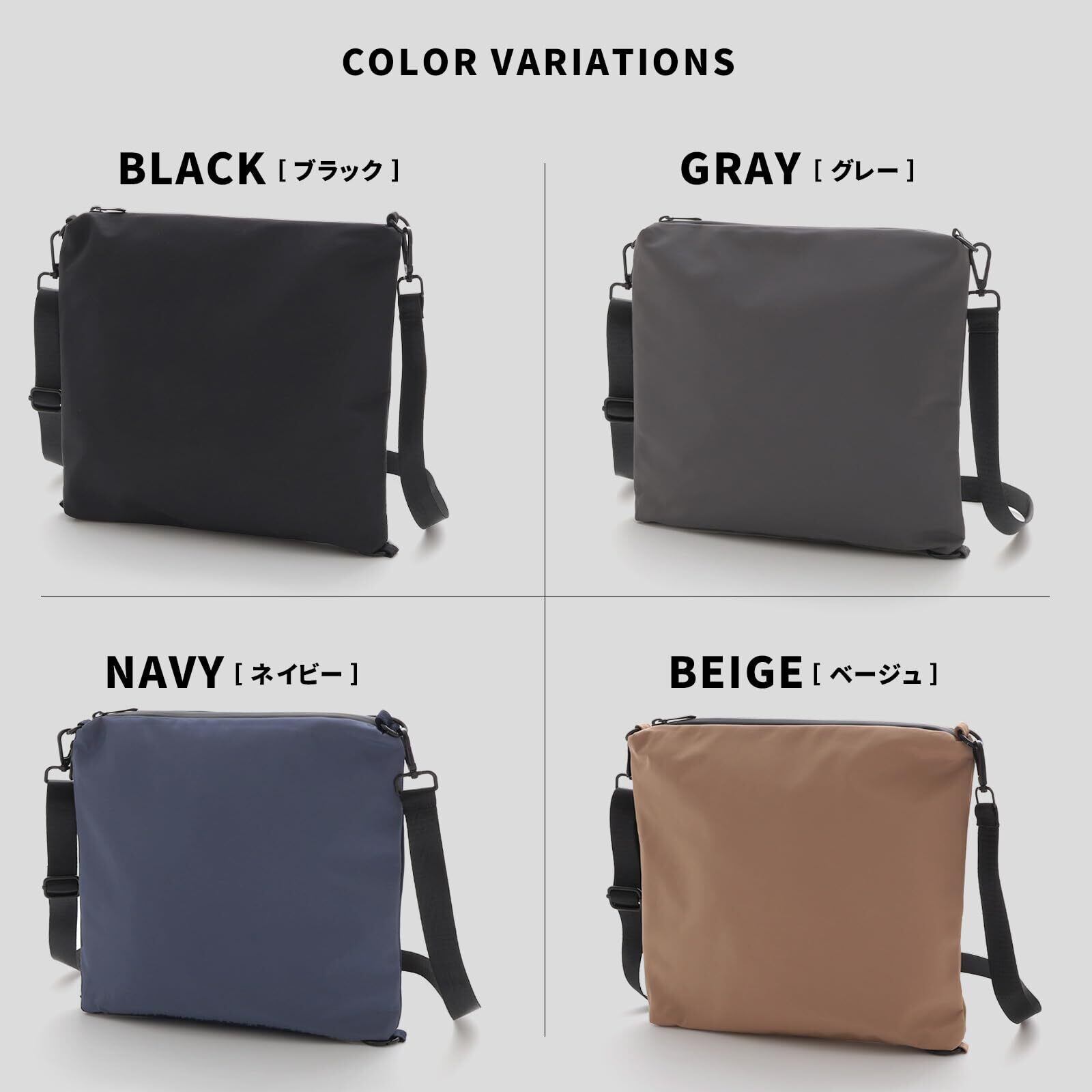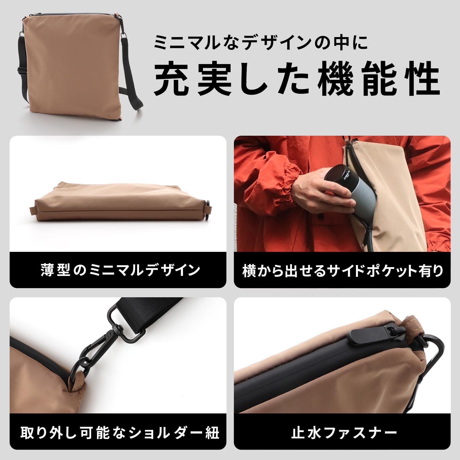 高品質ナイロン&撥水仕様!突然の雨でも安心 撥水性のある高品質ナイロン素材を採用し、軽量ながらも耐久性に優れた設計。撥水生地、防水ファスナー使用なので、突然の雨でも中の荷物をしっかり守ります。アウトドアや旅行先での急な天候変化にも対応しやすく、アクティブなシーンでも活躍。シンプルなデザインで、機能性とファッション性を兼ね備えたショルダーバッグです。