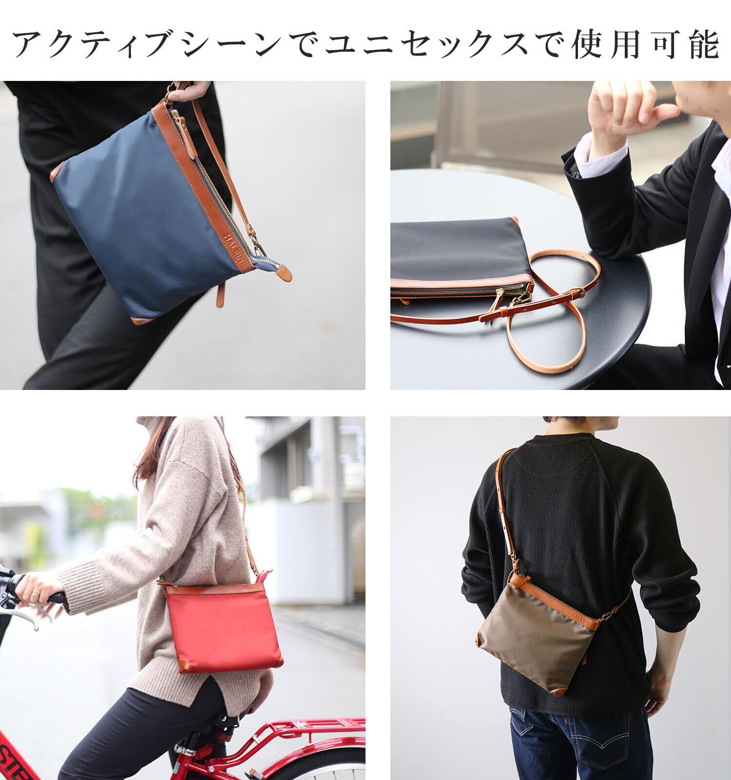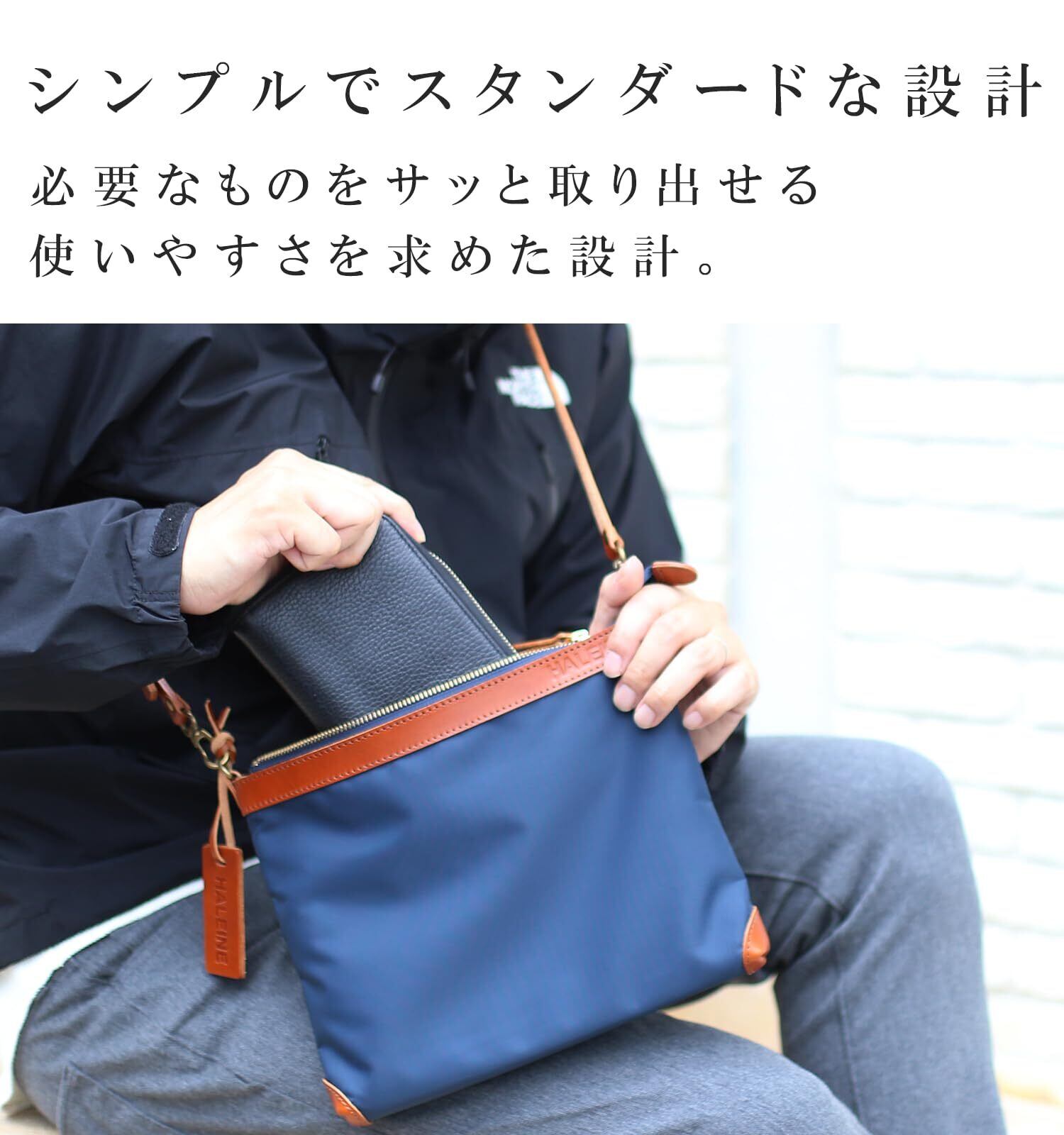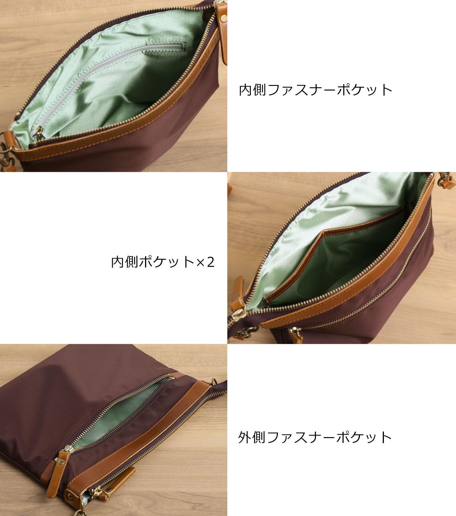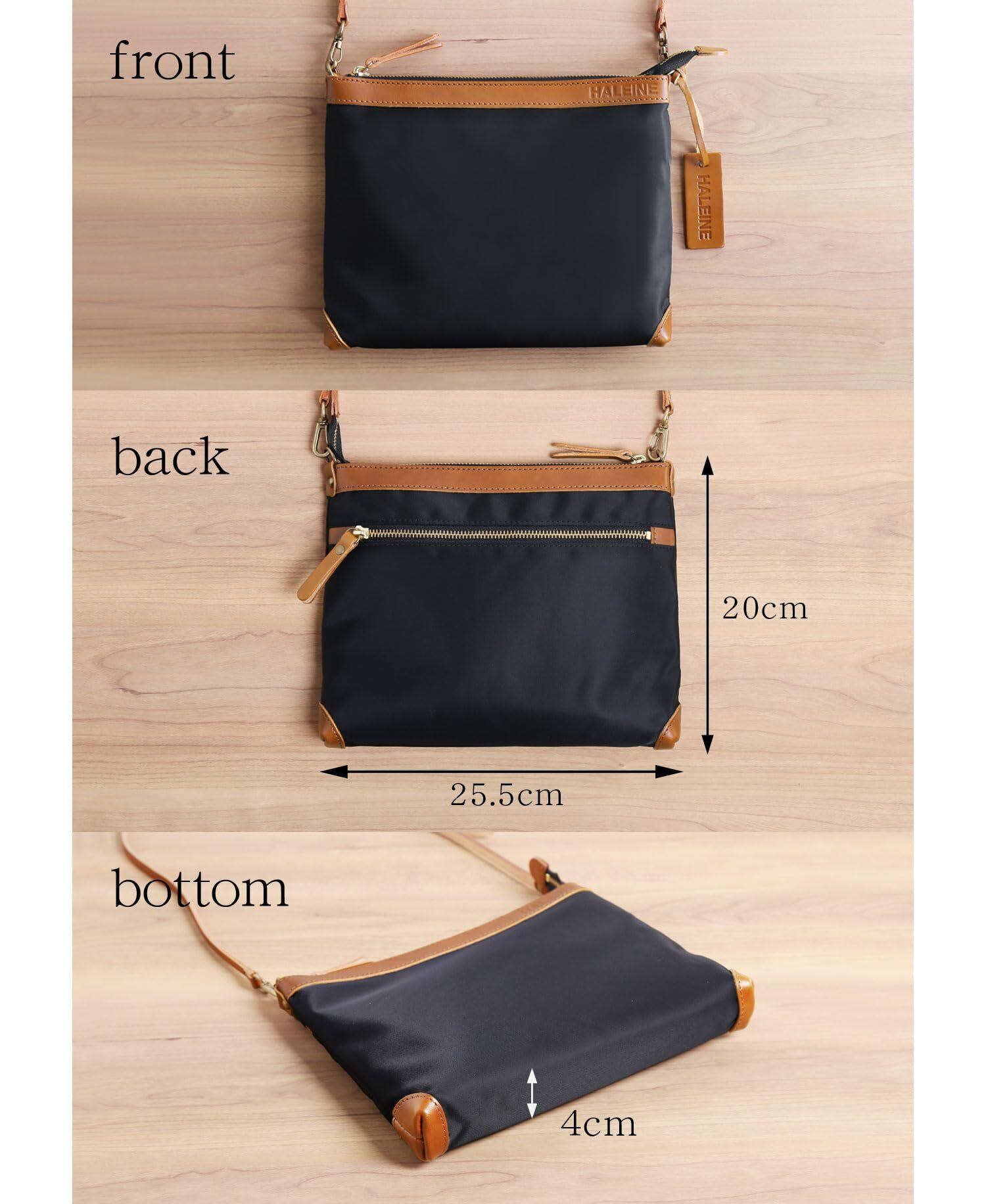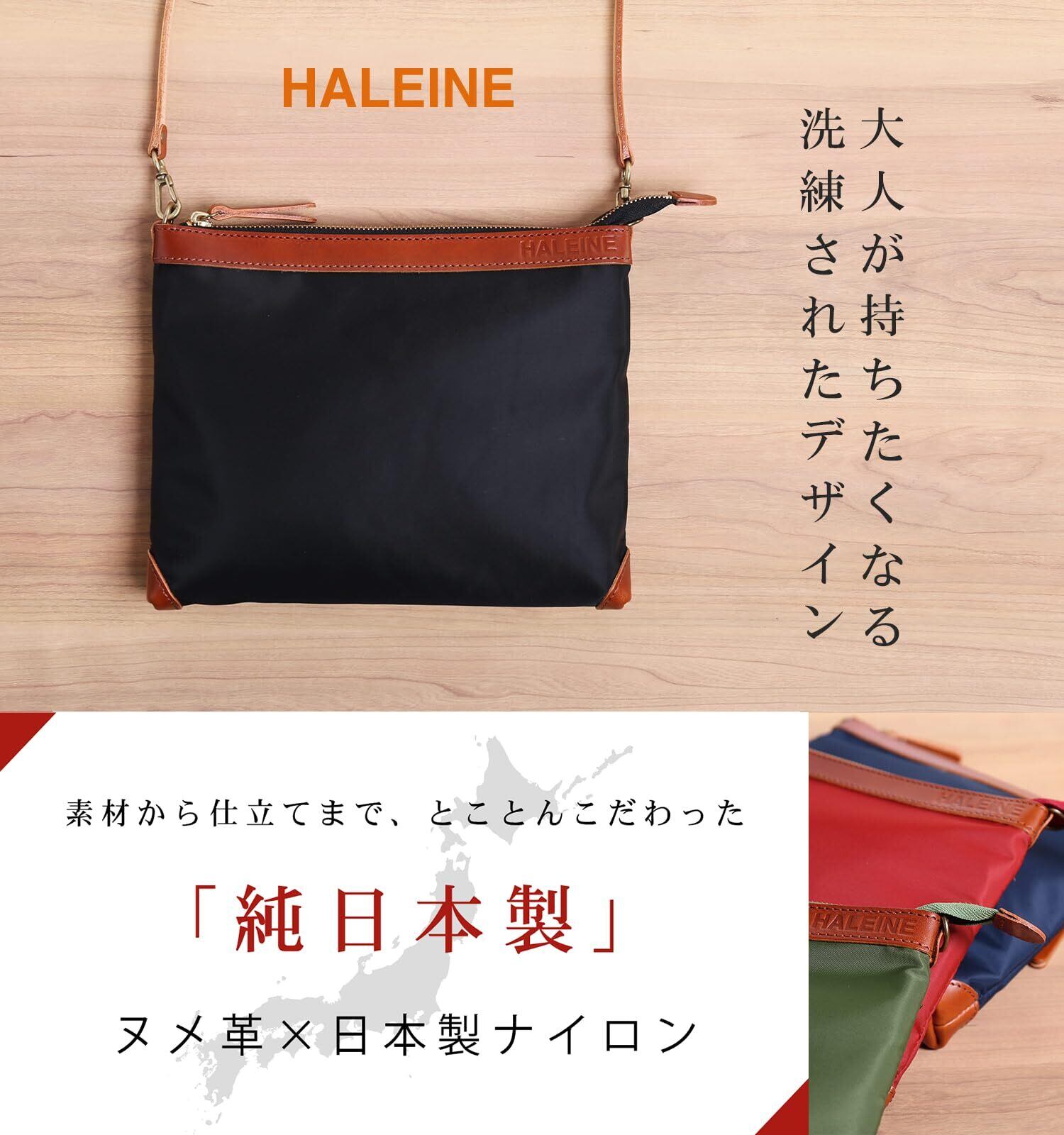 [HALEINE] サコッシュ メンズ 横型 ナイロン ヌメ革 本革 ショルダーバッグ 斜めがけ 日本製