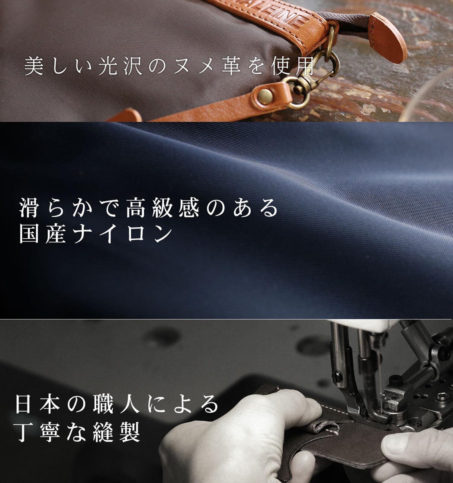 【日本製】日本の職人の手で丁寧に縫製された安心のクオリティ。熟練職人の技が輝くサコッシュです。