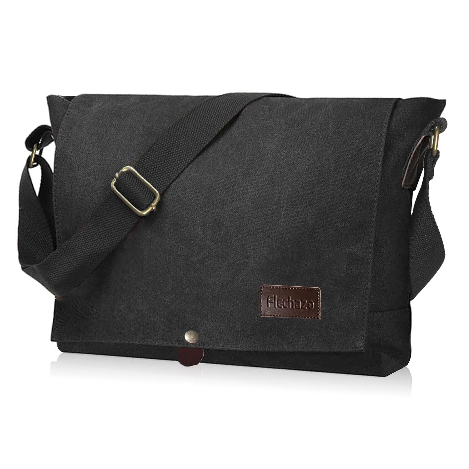 【特価セール】[Flechazo] ショルダーバッグ メンズ メッセンジャーバッグ 厚手帆布 育つ本革 YKKファスナー A4対応 14インチ 大容量 通勤 旅行 軽量 一生モノ | 無意味ステッカー