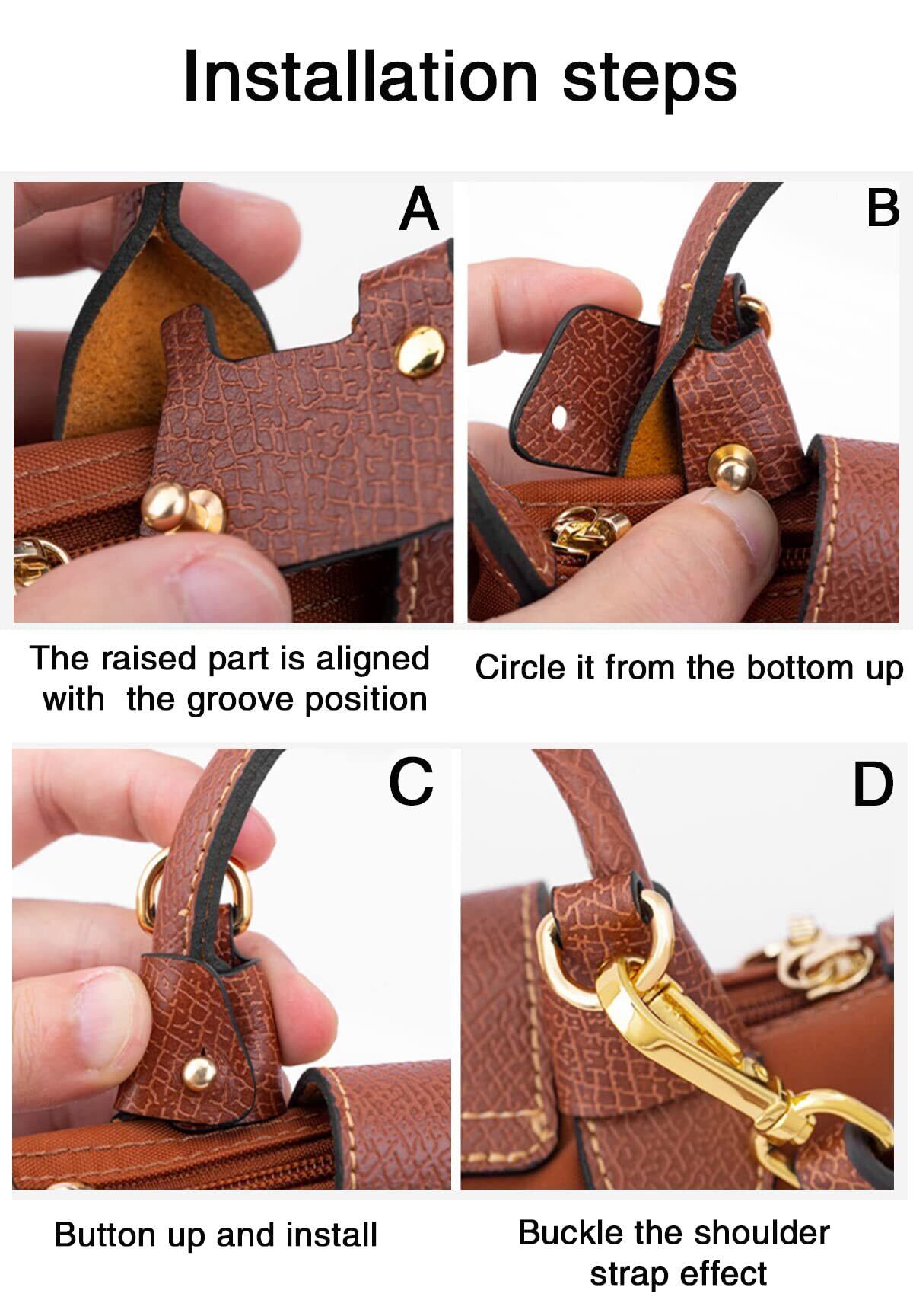 [改造】2つのD型バックルをバッグの持ち手に巻きつけ、ショルダーストラップの面ファスナーと合わせることで、バッグを傷めることなくクロスボディやショルダーバッグに改造できる。