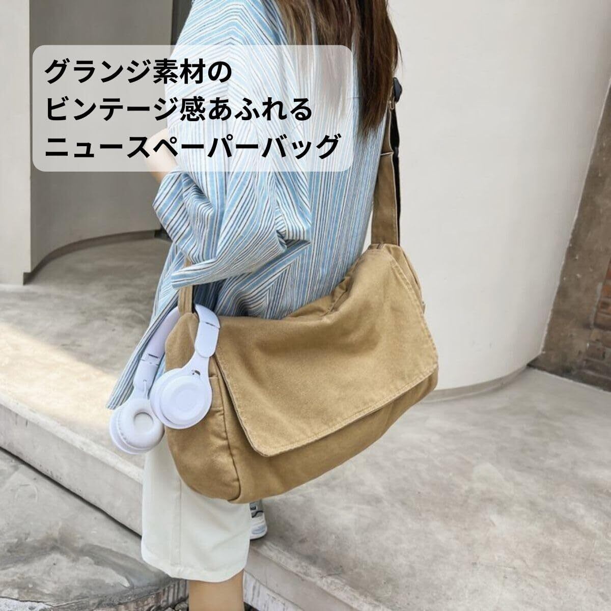 [Fuji-cellar] ニュースペーパーバッグ キャンバス生地 2way ヴィンテージ グランジ ミリタリー メッセンジャーバッグ