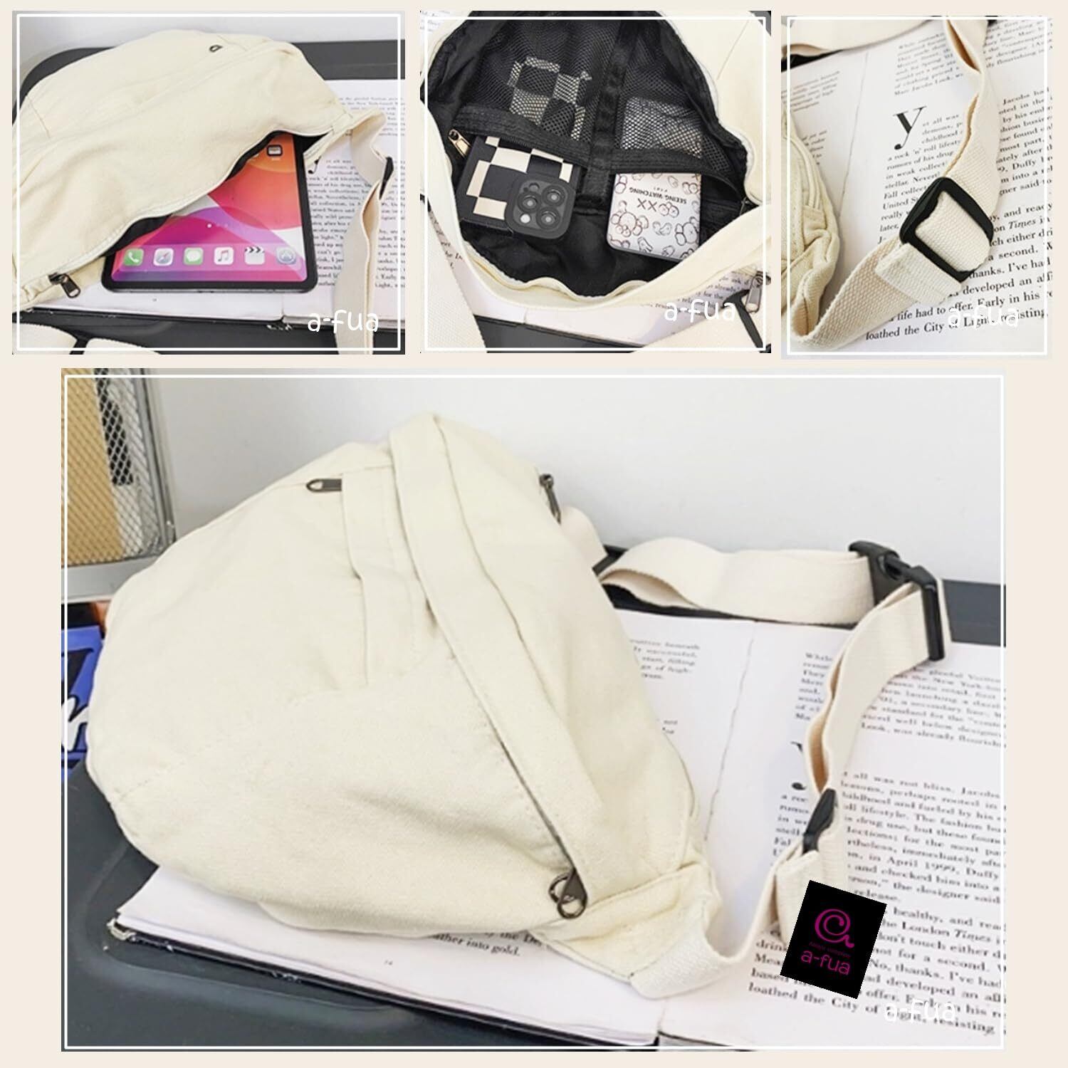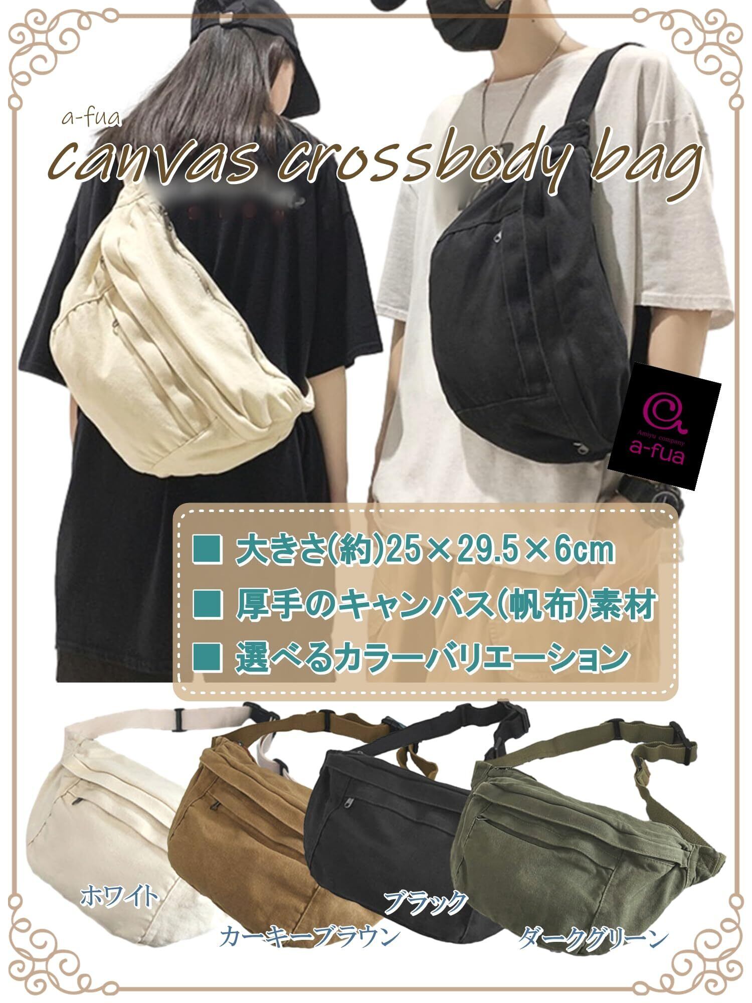 [a-fua] メッセンジャーバッグ クロスボディ 斜め掛け キャンバス スリング バッグ 大きめ 大容量 帆布 (ブラック)