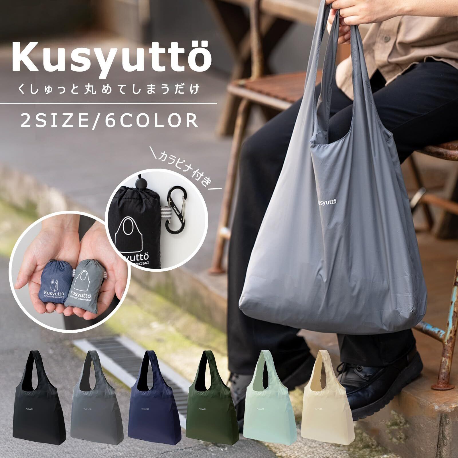 【たたまず簡単収納】クシュクシュとたたまず簡単に小さく収納できるエコバッグ。