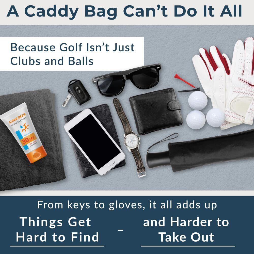 【貴重品を雨から守る!】スマートフォン・距離計などの雨に濡らしたくない機器などまで守ってくれる「防水ジッパー付ポケット」があり、ラウンド中の突然の雨から大切な手荷物を守ります。素材には撥水性の高いPU素材を全面に使用しているので、サッと拭くだけ簡単お手入れ。