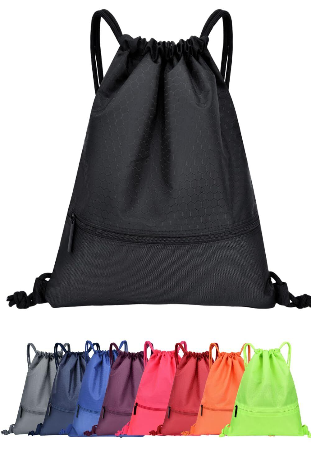 【数量限定】【大容量/防水/日本メーカー】ナップサック プールバッグ ジムバッグ 防水バッグ リュックサック 軽量 フィットネス スポーツ 防水 撥水 シューズ収納 男の子 女の子 メンズ レディース(ブラック) | 無意味ステッカー