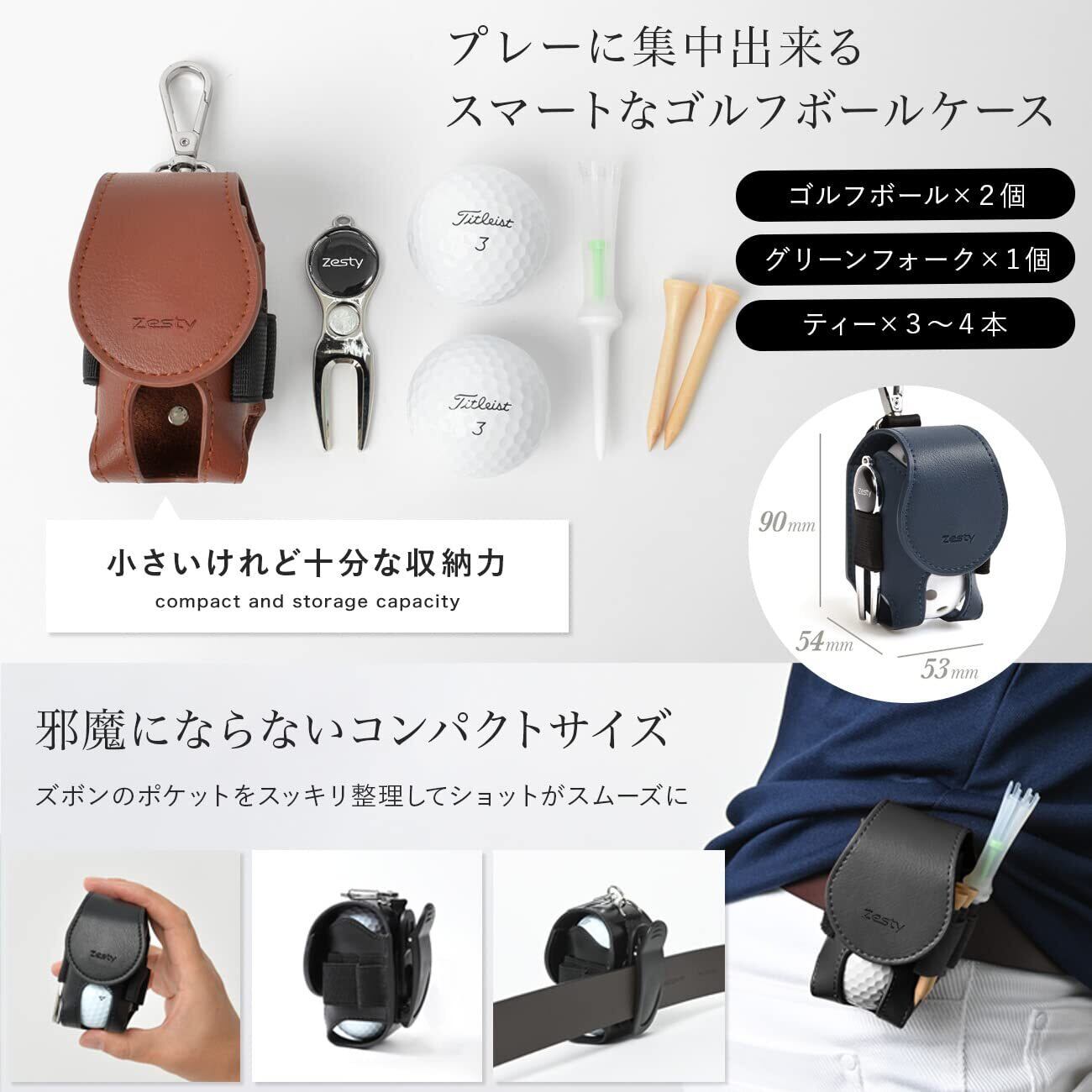 Zesty ゴルフボールケース 機能性にこだわるプレイヤーのゴルフ ボールポーチ ゴルフ用品 グリーンフォーク