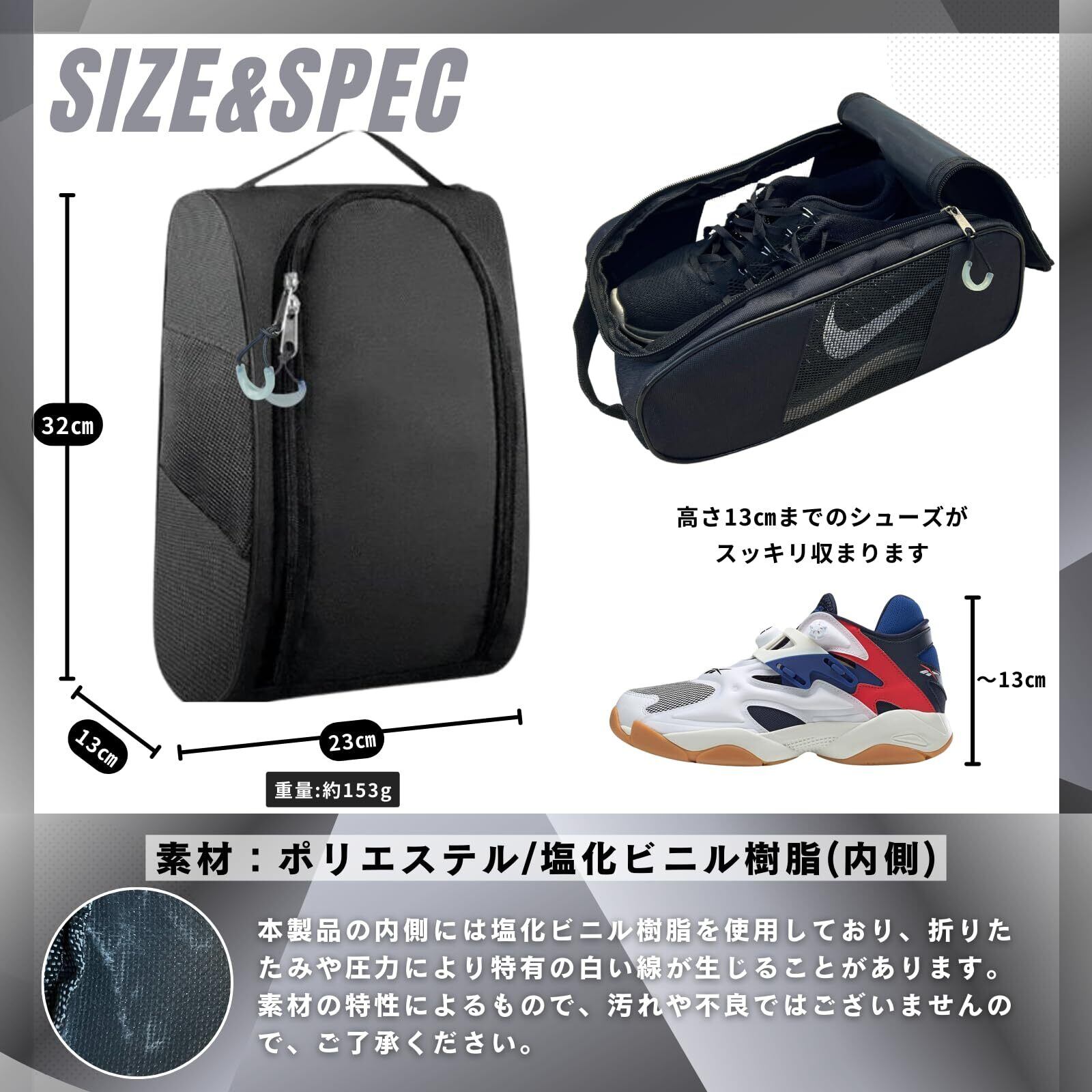 【国内検査済み】シューズケース シューズ入れ バッシュ ゴルフ シューズ袋 蒸れない 蓄光ジッパータブ