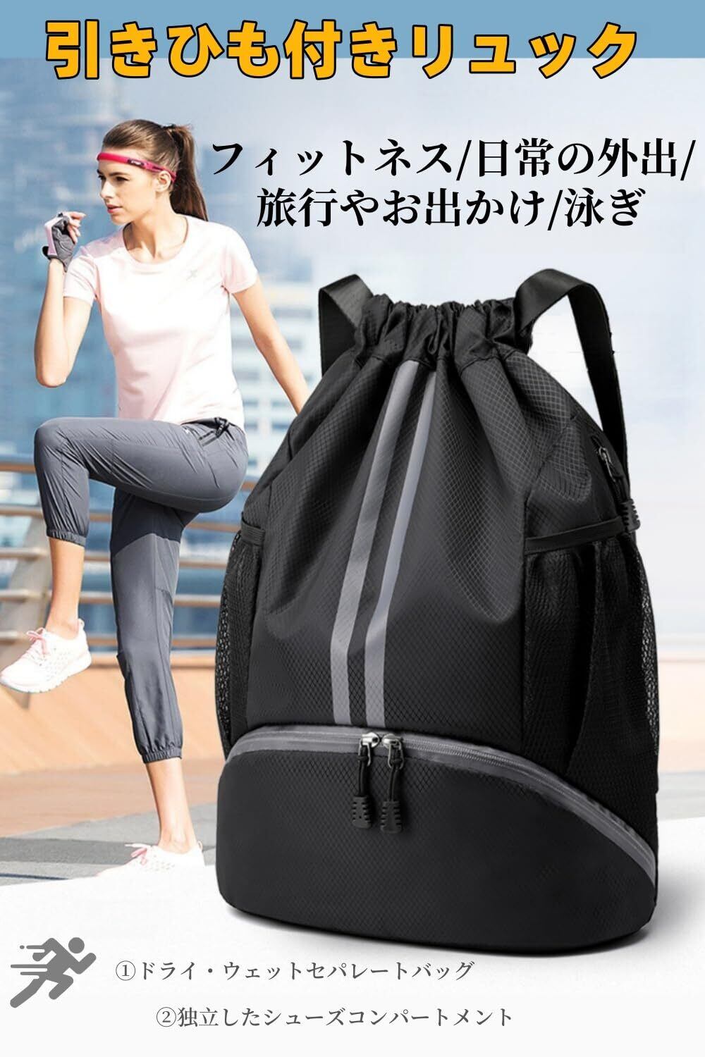 [Clair&Gina] ジムサック リュック シューズ収納バッグ プールバッグ 乾湿分離 スポーツバック 多機能 サイドポケット付 ナップサック 水泳 運動 遠足 男女兼用