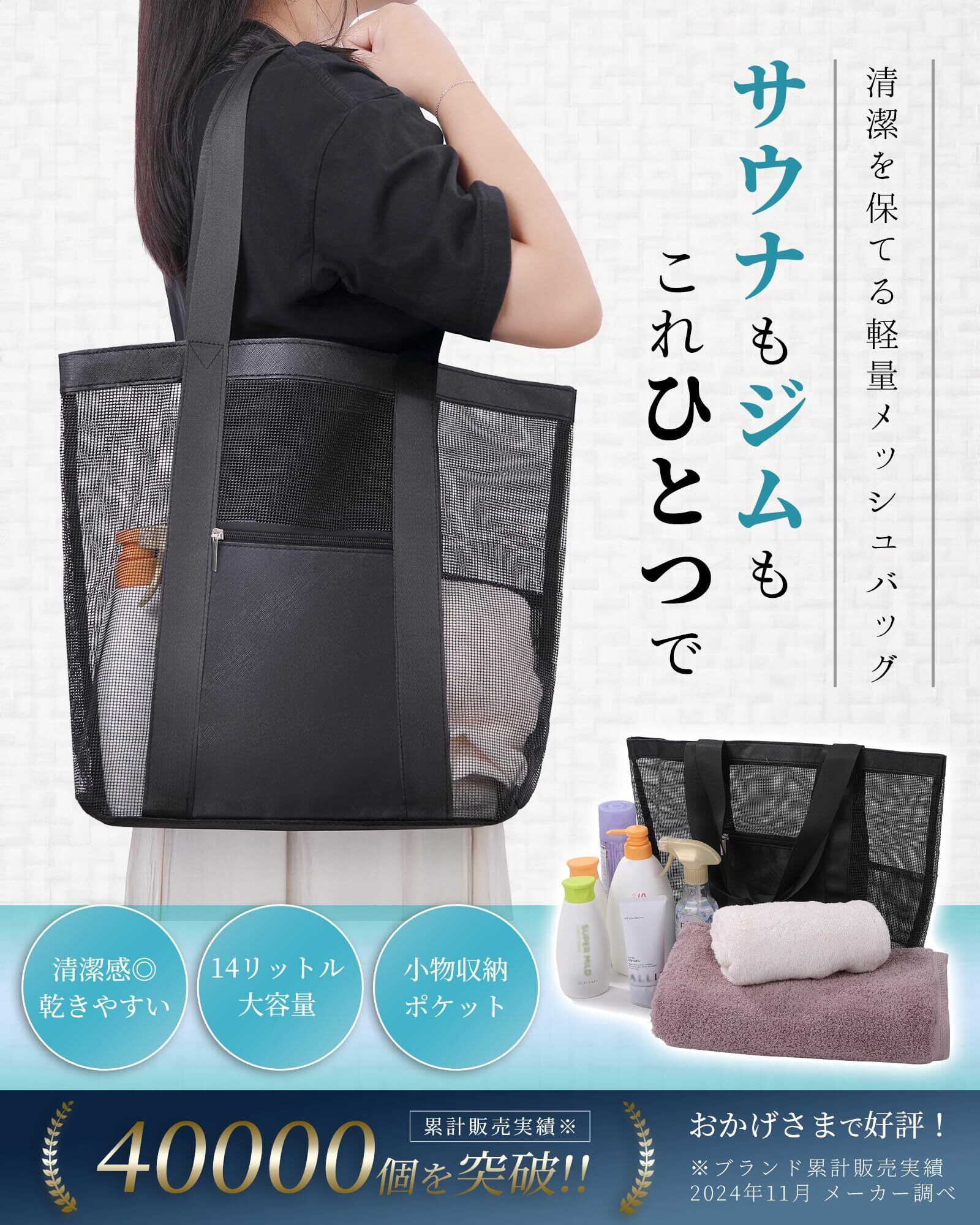 [TIKAKU] メッシュバッグ 軽量 大容量 【通気×コンパクト収納】 サウナ ジム 温泉 銭湯 スパ プール ビーチ スポーツ トートバッグ