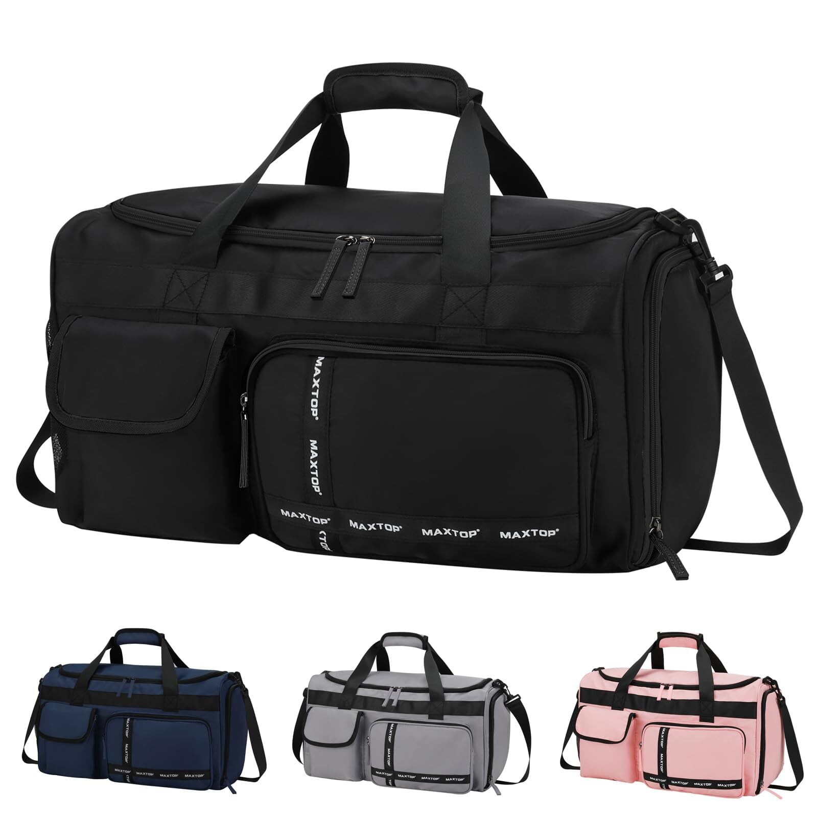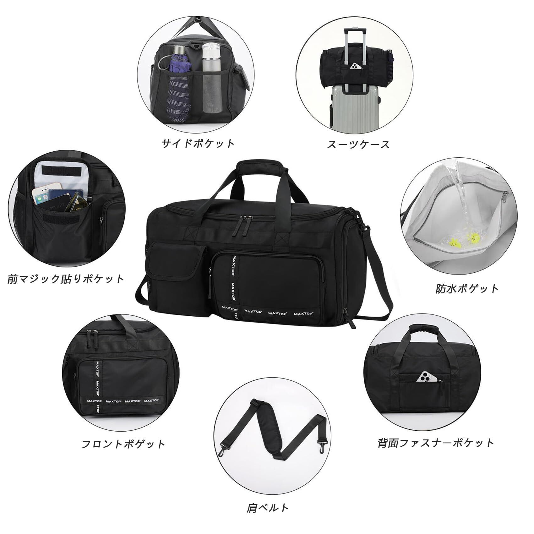 【2022最新】[MAXTOP]ボストンバッグ ドラムダッフルバッグ 大容量 旅行カバン 防水 軽量 乾湿分離 2泊3日 キャリーオンバッグ ダッフルバッグ スーツケース固定 アウトドア(ブラック) | 無意味ステッカー