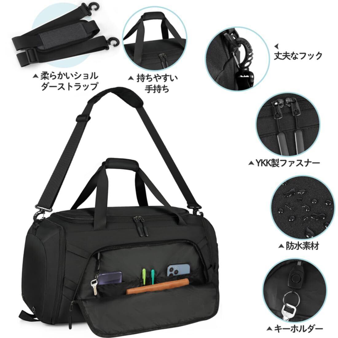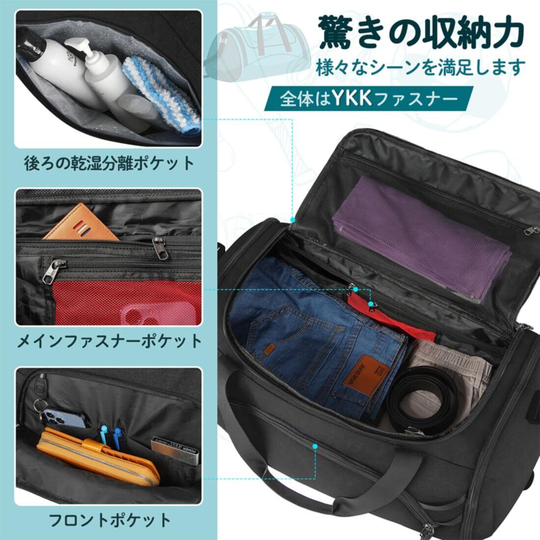 多用途バッグとYKK製ファスナー:この大容量なボストンバッグは旅行時だけでなく様々な場面で必要な容量をカバー。ジム、旅行、出張、運動、キャンプなど、様々なシーンで活躍してくれます!なお、バッグの全体は信頼できるYKK製ファスナーを使用して、長くご愛用いただけます