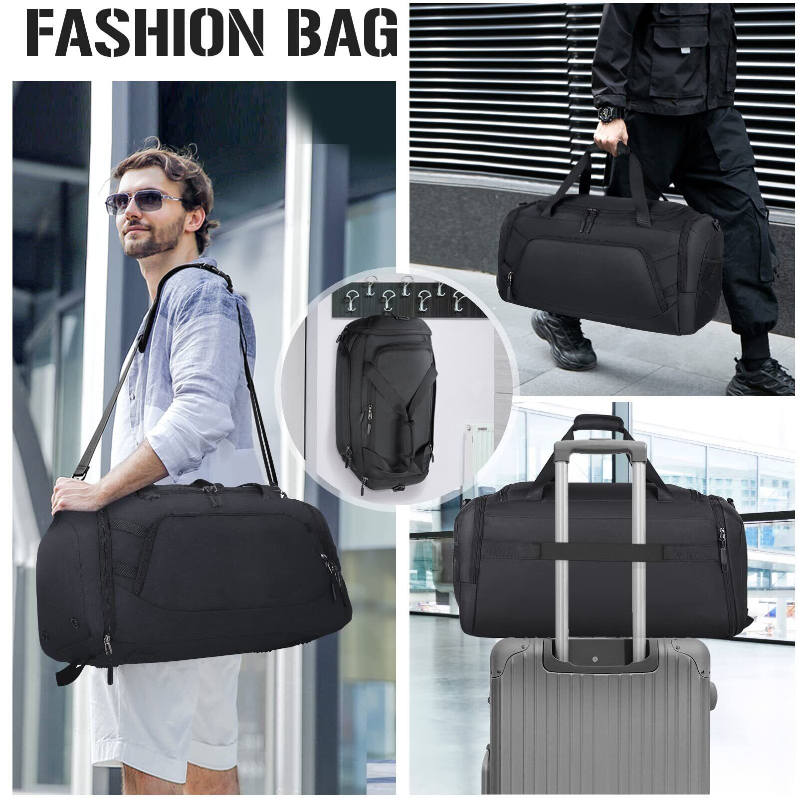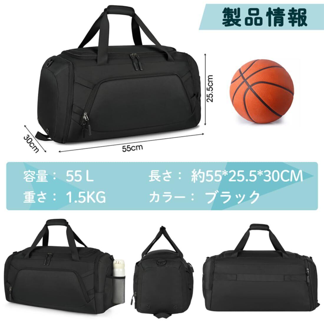 [RAINSMORE] ボストンバッグ メンズ 大容量 55L スポーツバッグ 修学旅行 YKKファスナー ジムバッグ 撥水加工 ダッフルバッグ シューズ収納 乾湿分離 3way 出張 ブラック
