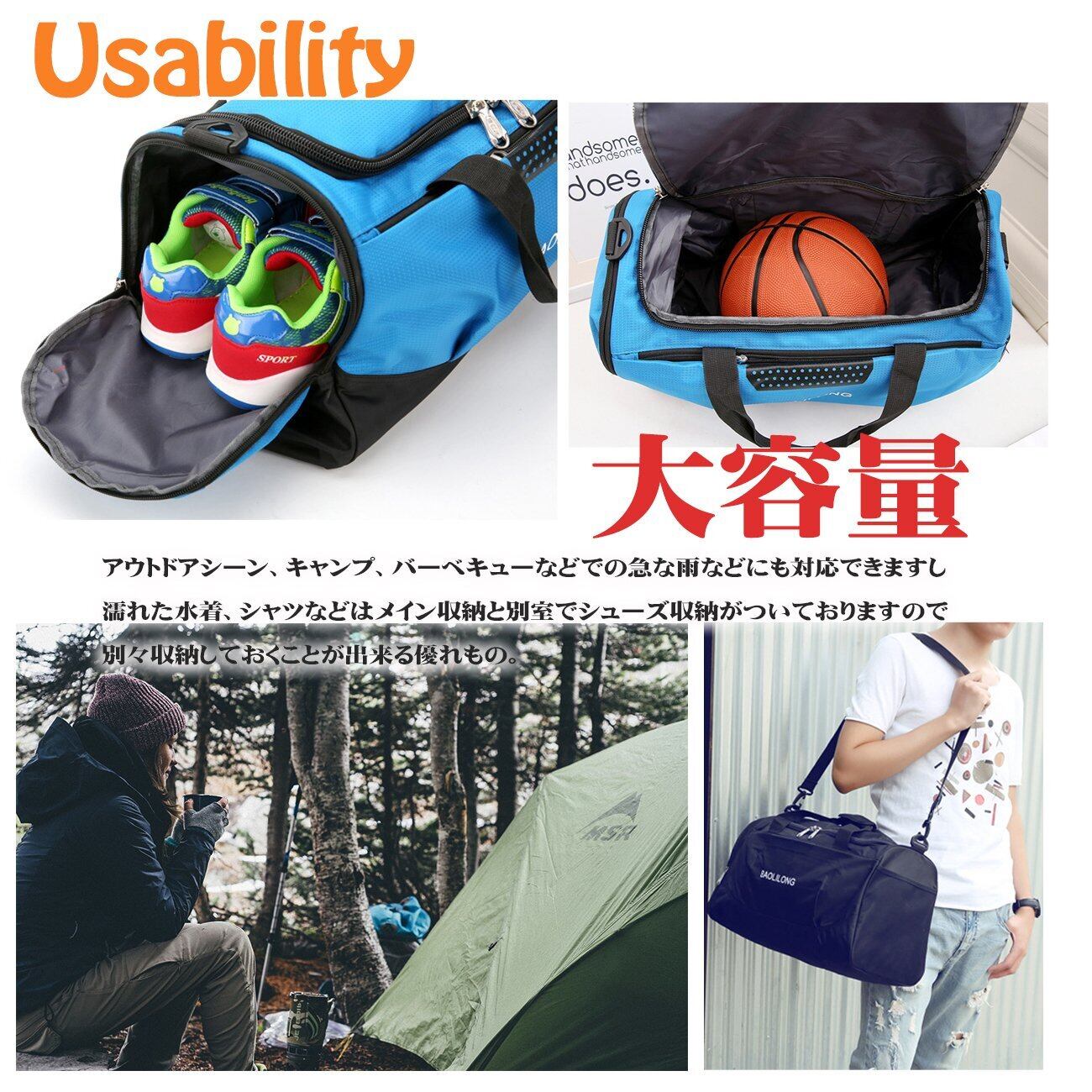 アウトドアシーン、キャンプ、バーベキューなどでの急な雨などにも対応できますし、濡れた水着、シャツなどはメイン収納と別室でシューズ収納がついておりますので別々収納しておくことが出来る優れもの。