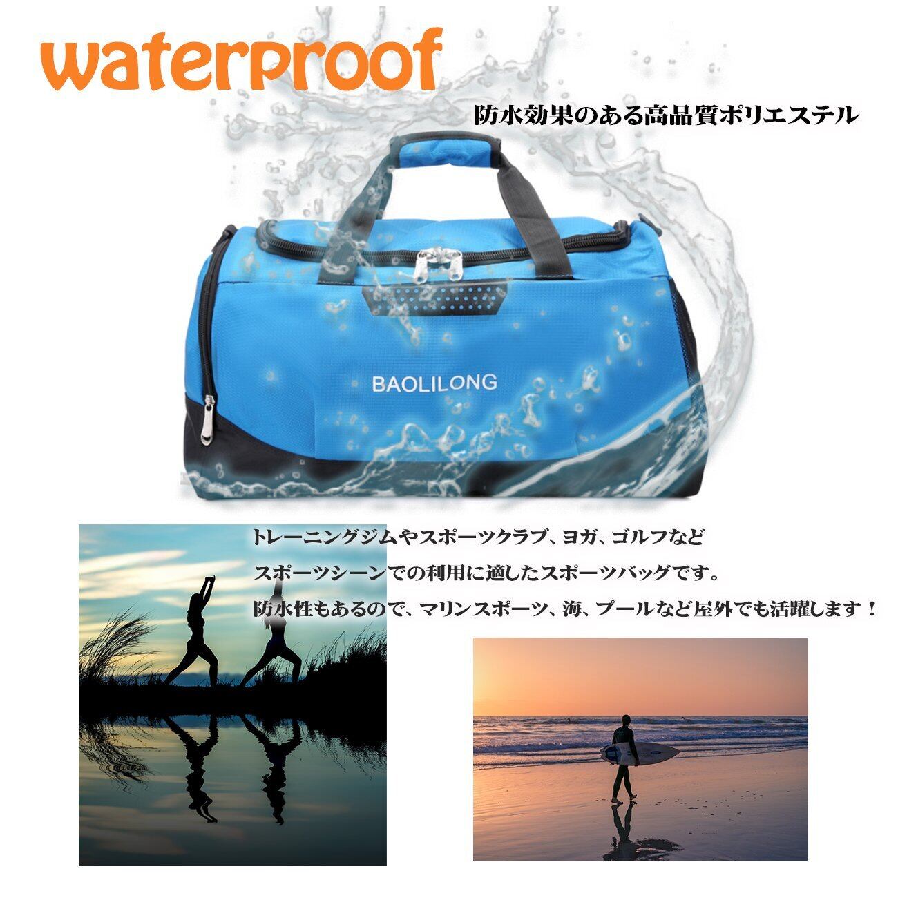 トレーニングジムやスポーツクラブ、ヨガ、ゴルフなどスポーツシーンでの利用に適したスポーツバッグです。防水性もあるので、マリンスポーツ、海、プールなど屋外でも活躍します!