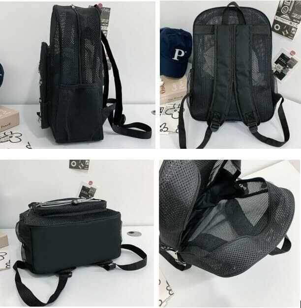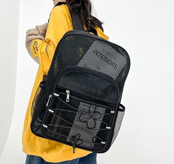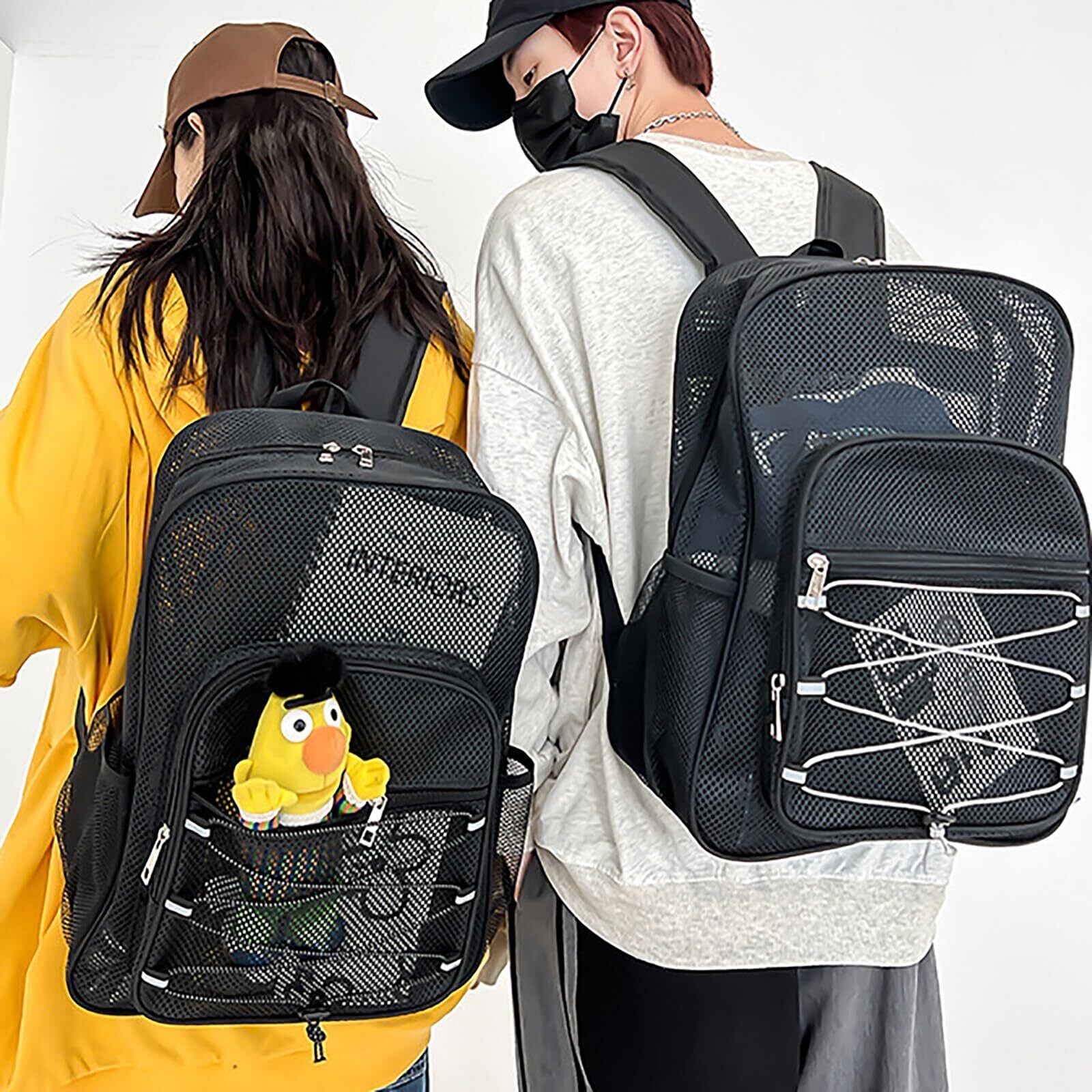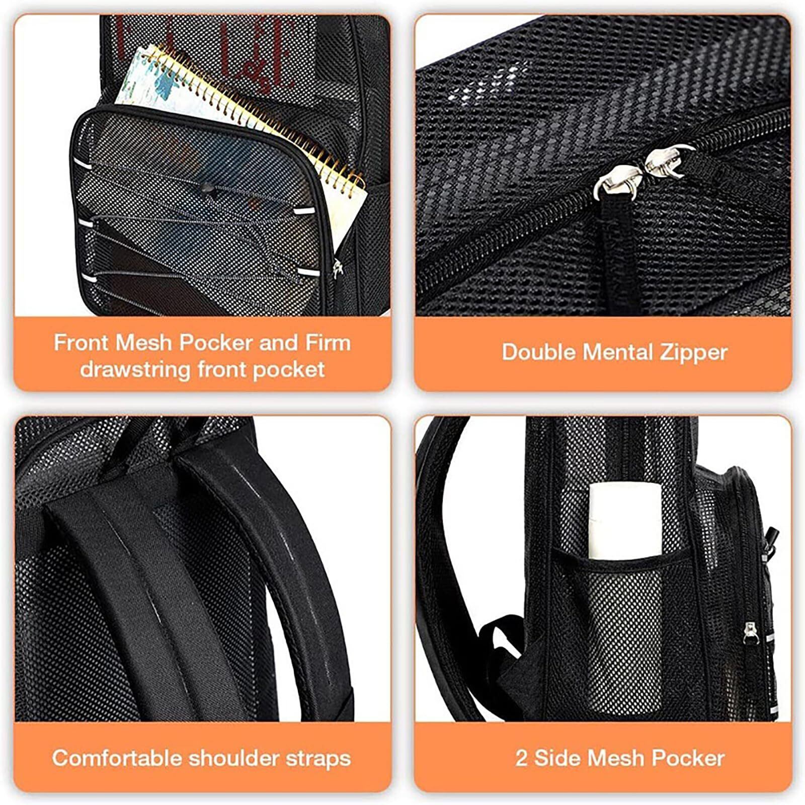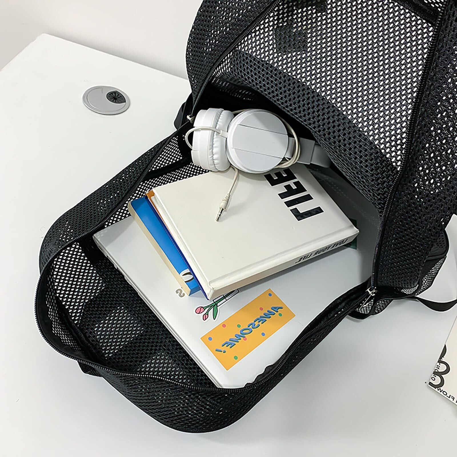 メッシュバックパック 高耐久 軽量 シースルー 通気性 カレッジ 通勤 旅行 ビーチ 水泳 アウトドア スポーツ用 デイパック