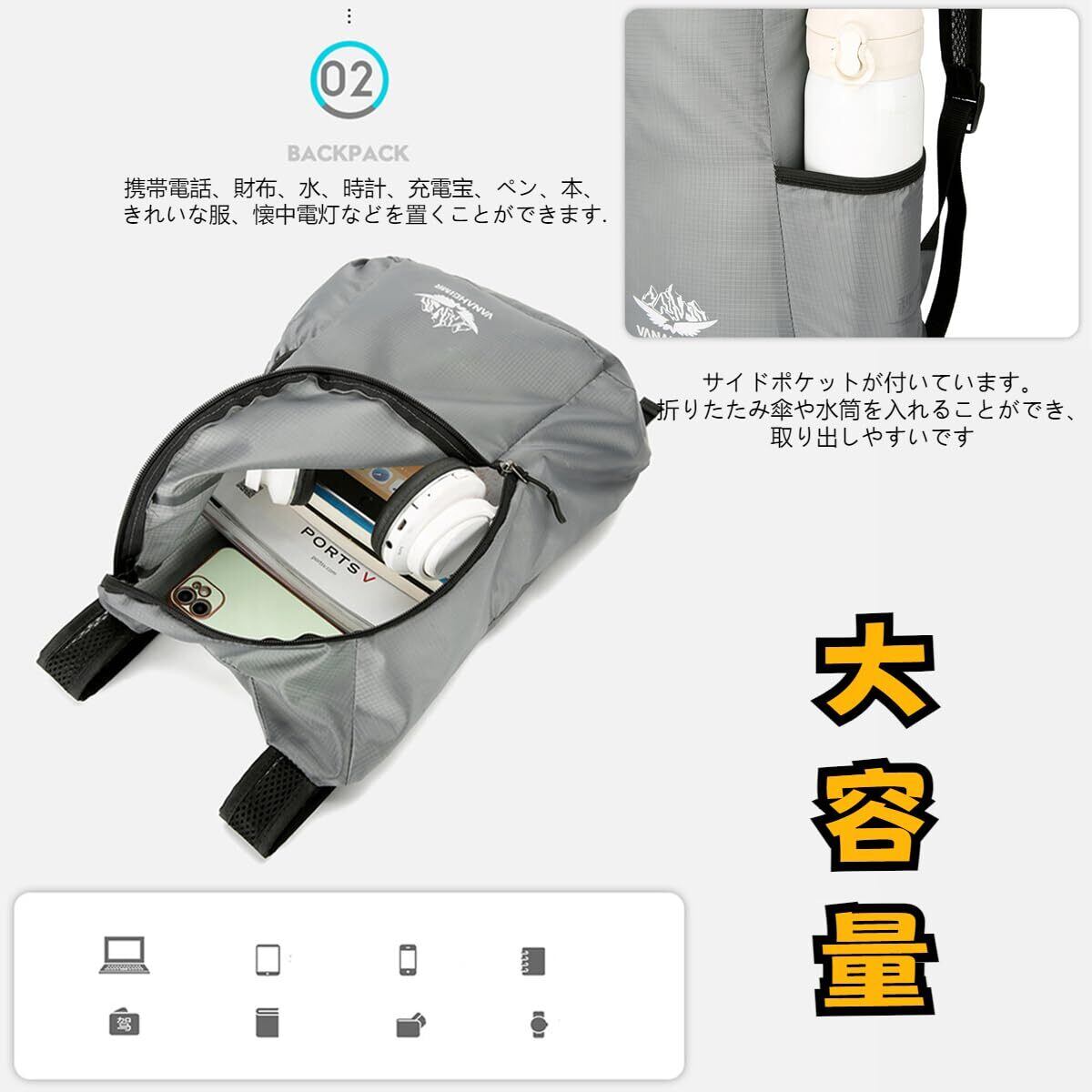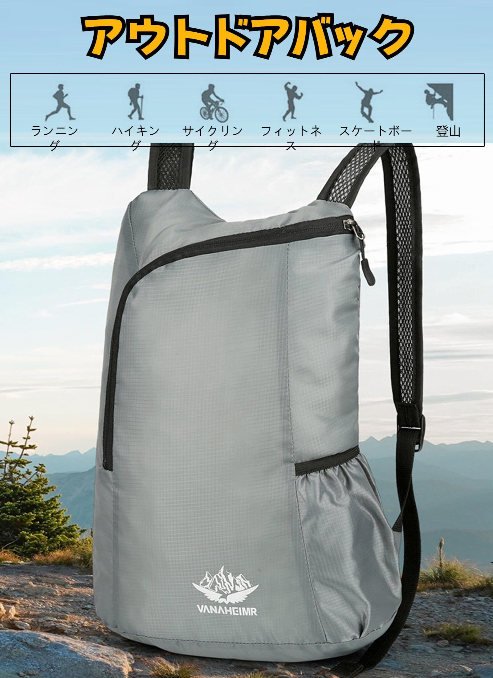 [Yurika] アウトドアバック 大容量リュック 折りたたみ式 登山バッグ リュックサック超軽量 防水 リュック アウトドア 収納袋 男女兼用 旅行 登山 通勤 キャンプ トレッキング-灰色
