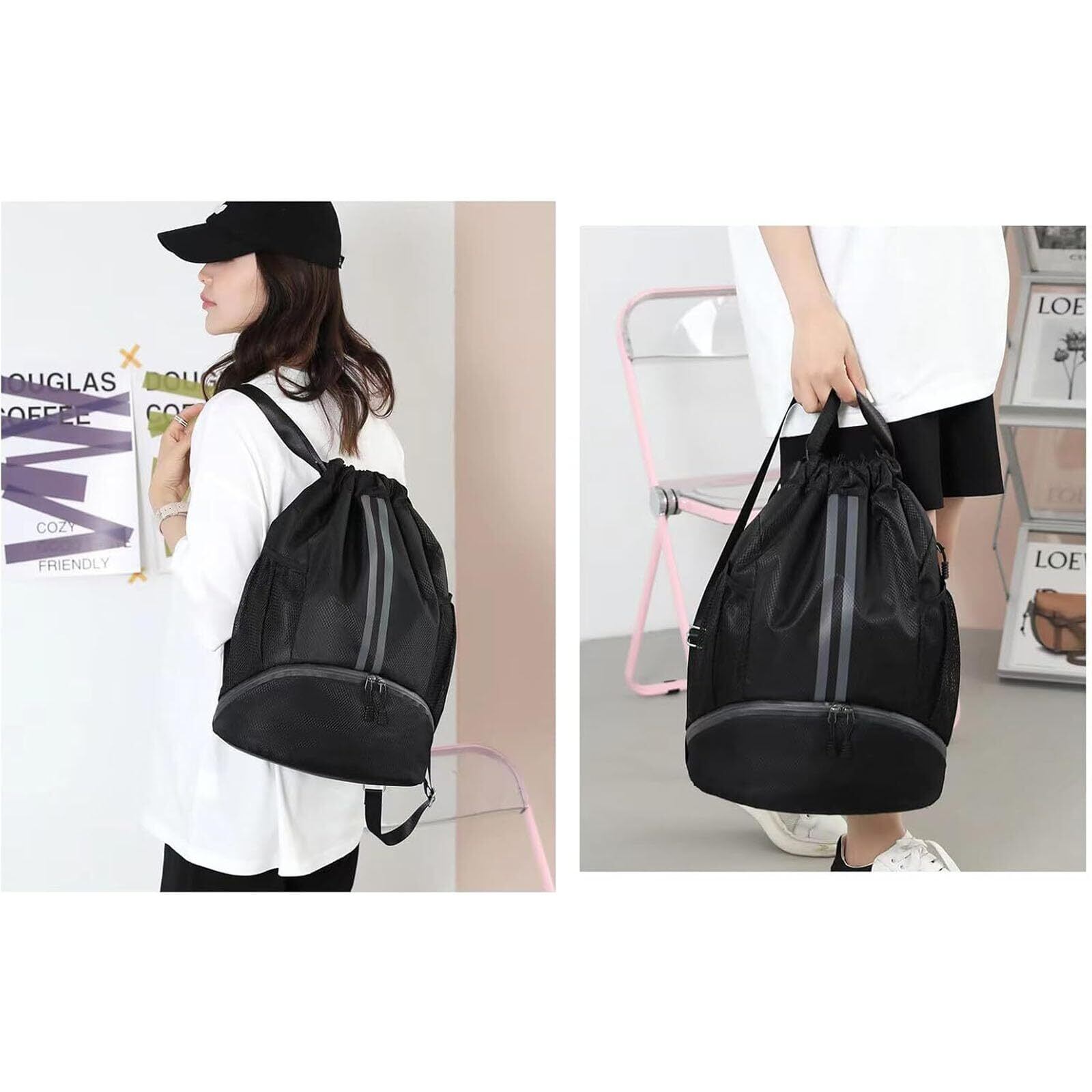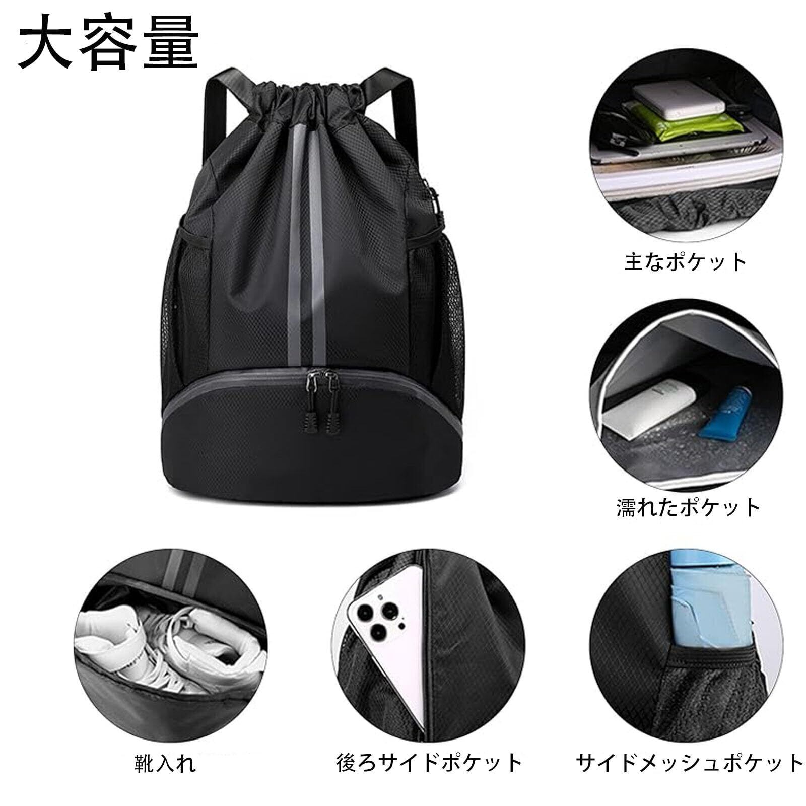 サッカーバッグ、巾着バックパックジムバッグ、シューズコンパートメントとメッシュポケット付き、サッカー、バスケットボール、バレーボール、フットボール、スポーツジム用