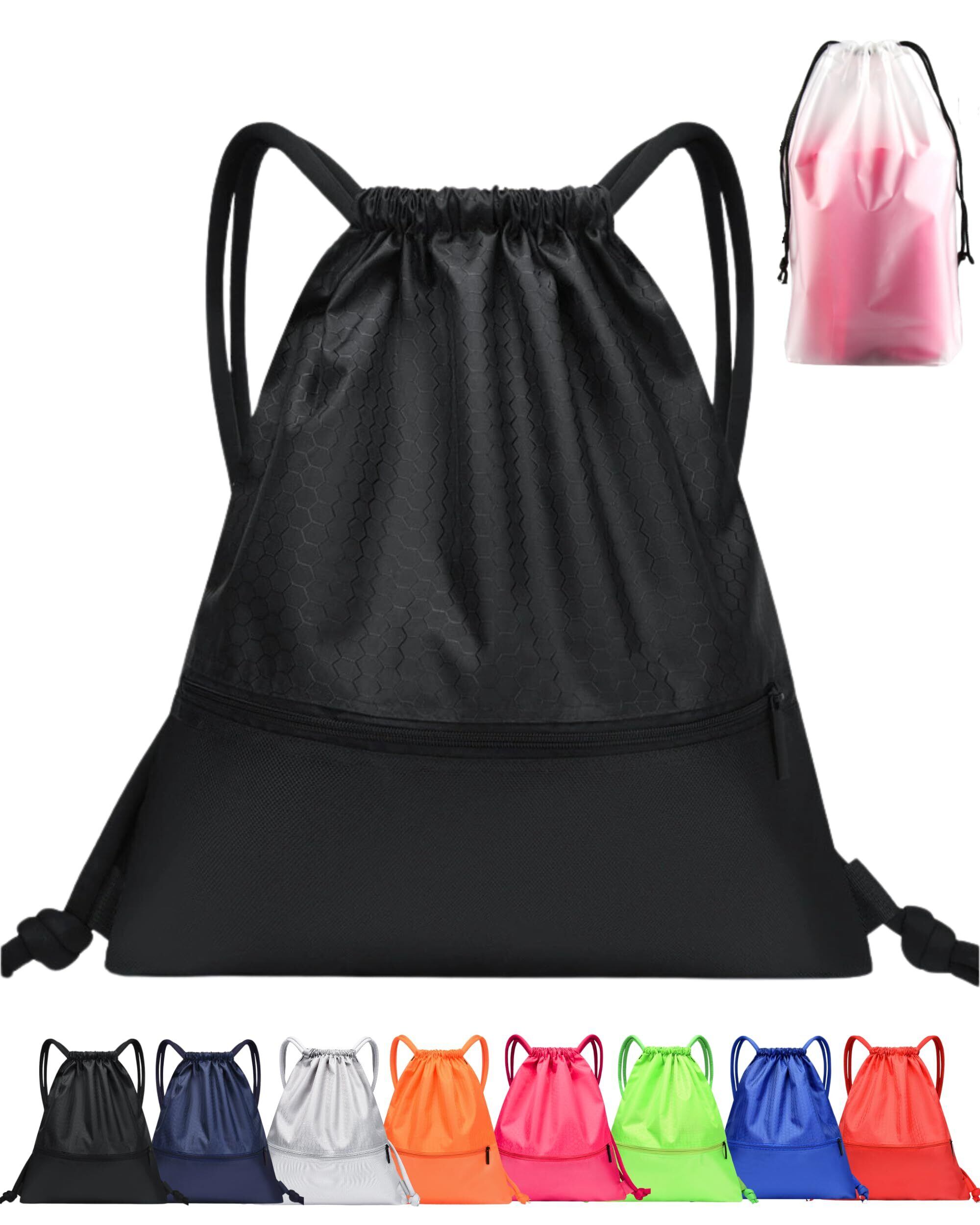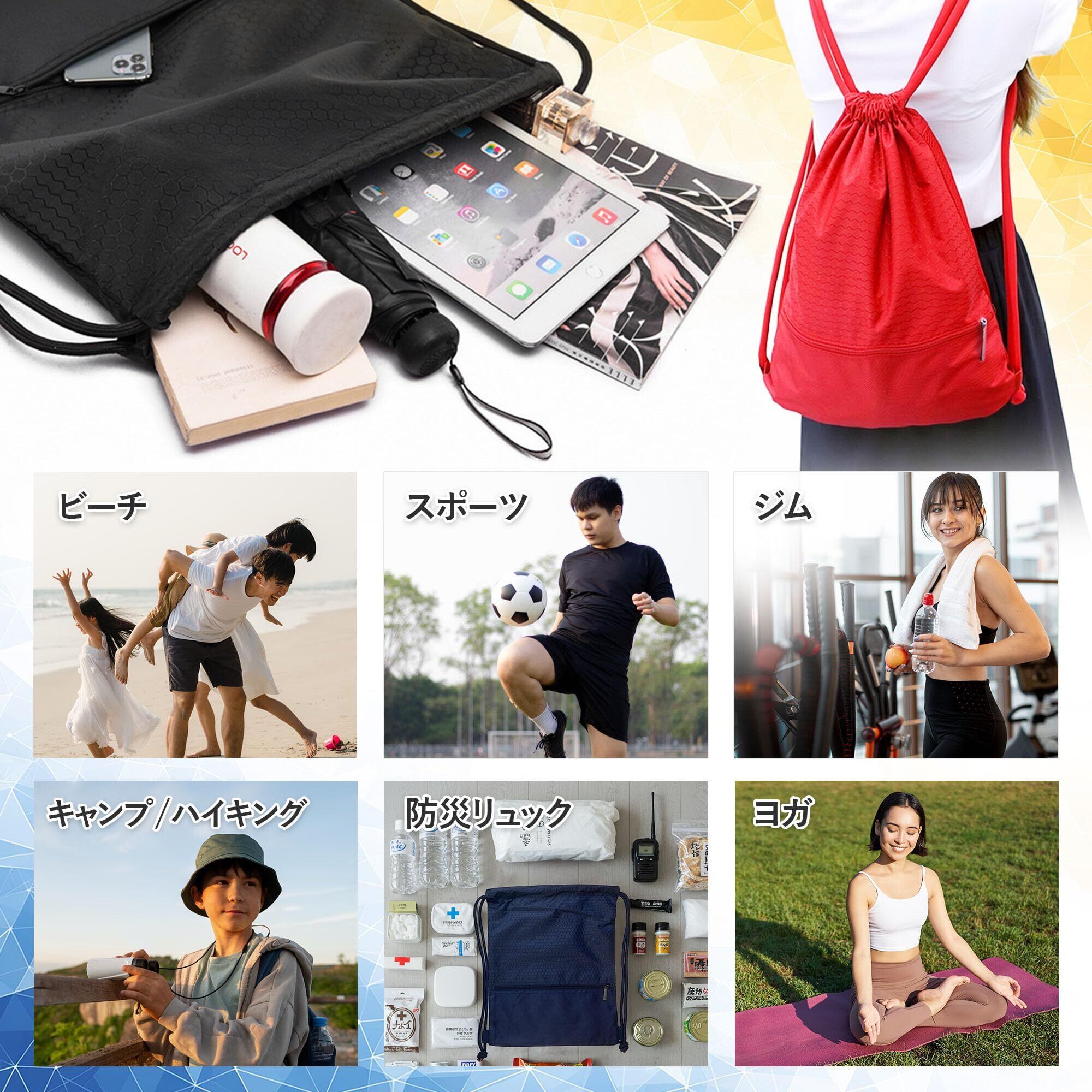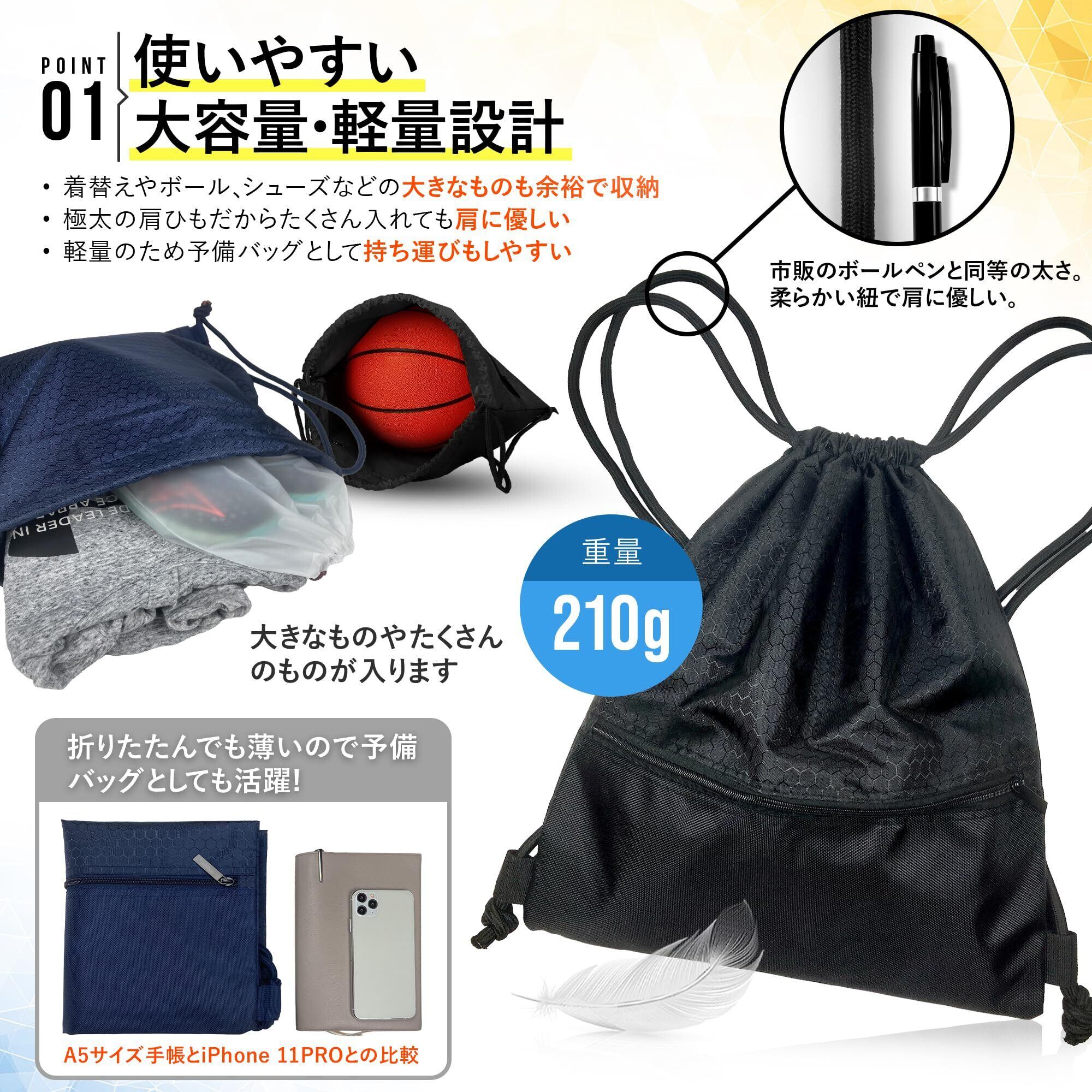 【整理収納アドバイザー監修】 TeamOneDay スポーツ ナップサック 大容量 [シューズ袋付属] 防水 丈夫 プール ジム ヨガ ギフトに最適 大きめ リュックサック