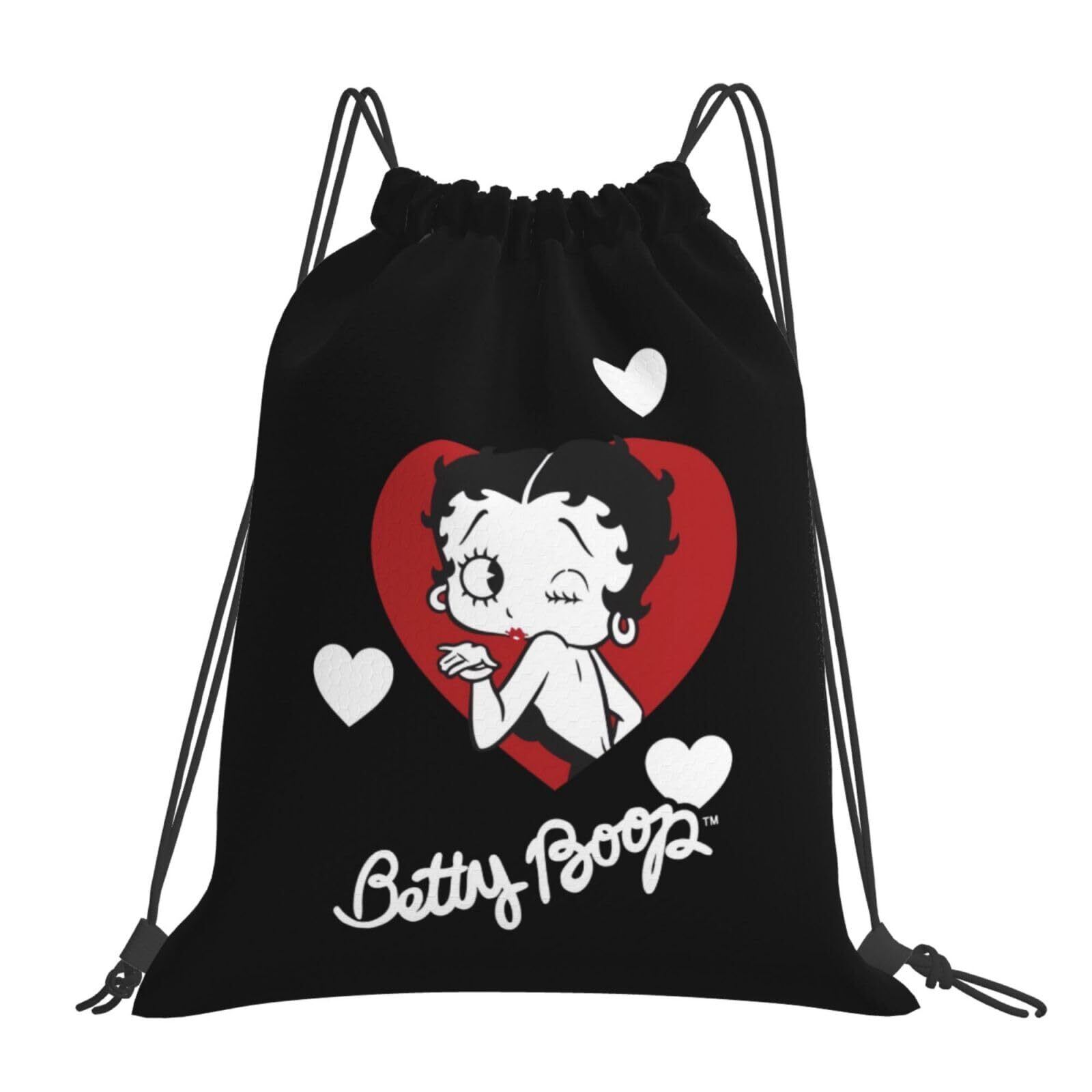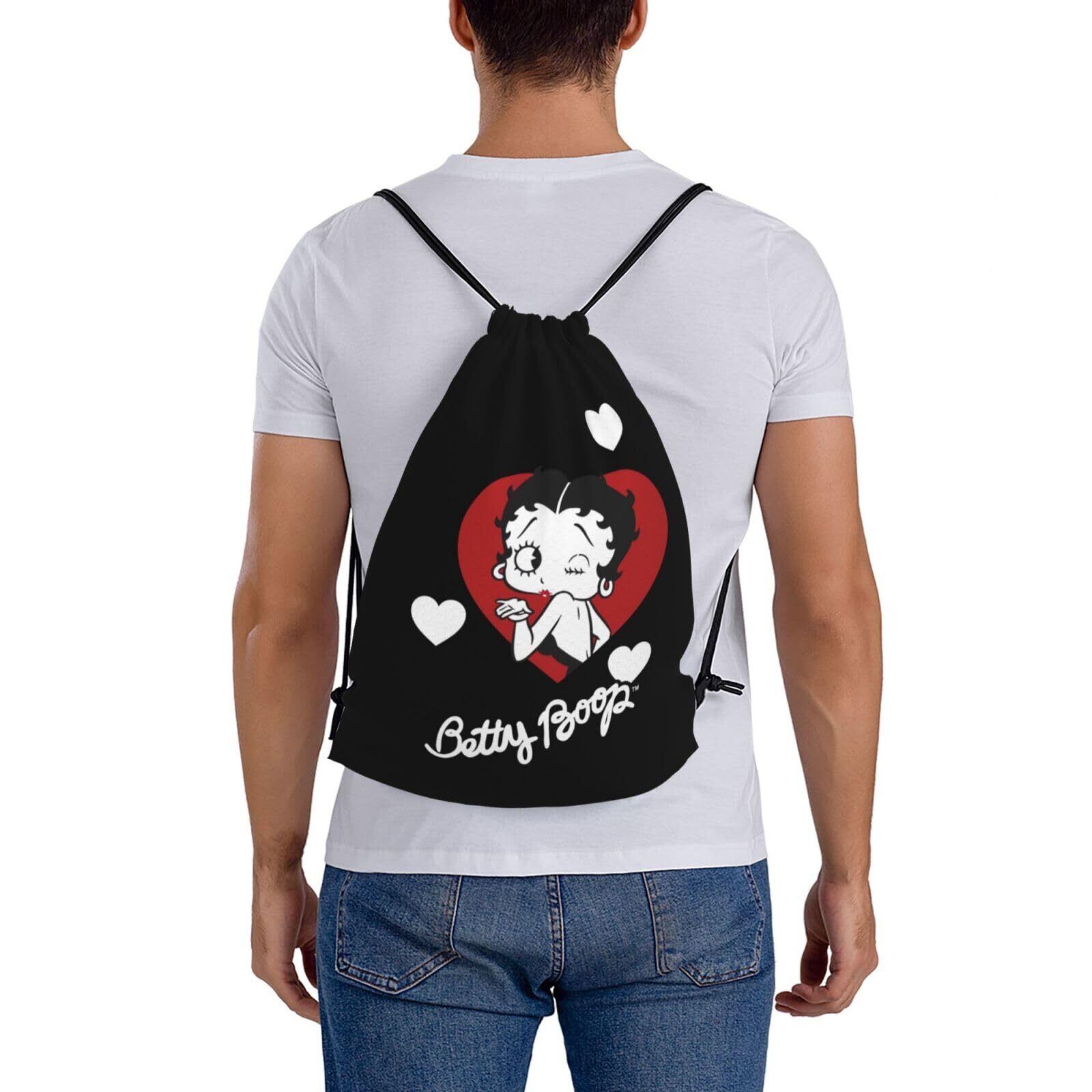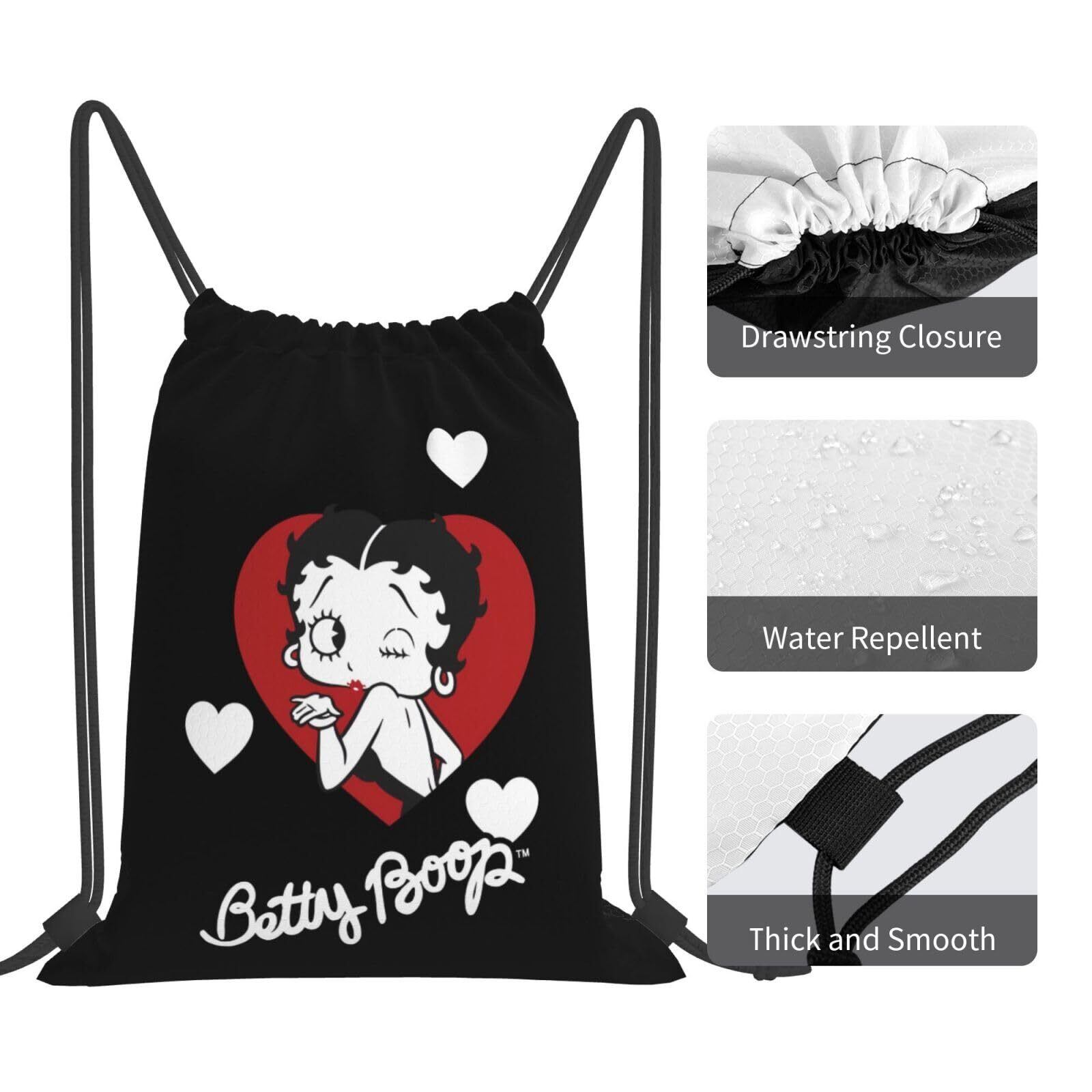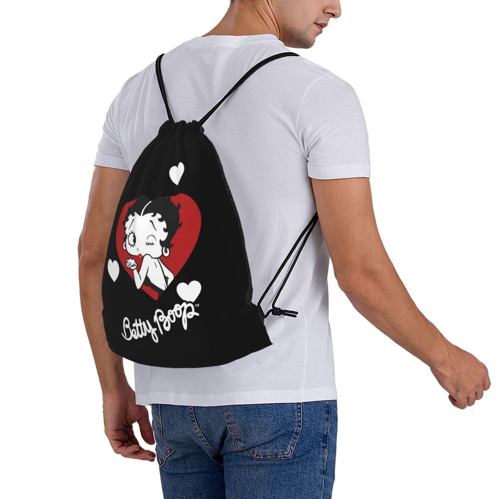 [MINIER] ベティちゃん ベティブープ ジムサック 大容量ナップサック 巾着バック 軽量 防水 旅行 アウトドア スポーツジム ジムバッグ 運動トレーニングunisex 多機能 巾着袋 バックパック。長さ42cmx幅36cm