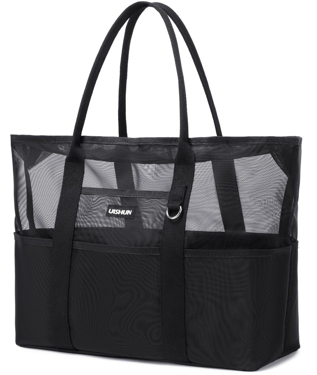 【数量限定】[uishun] ビーチバッグ プールバッグ 【自立式×耐久性×軽量型】【従来品より30%高密度】メッシュバッグ 大容量 温泉 大人 beach bag ジム 銭湯 水泳用 | 無意味ステッカー