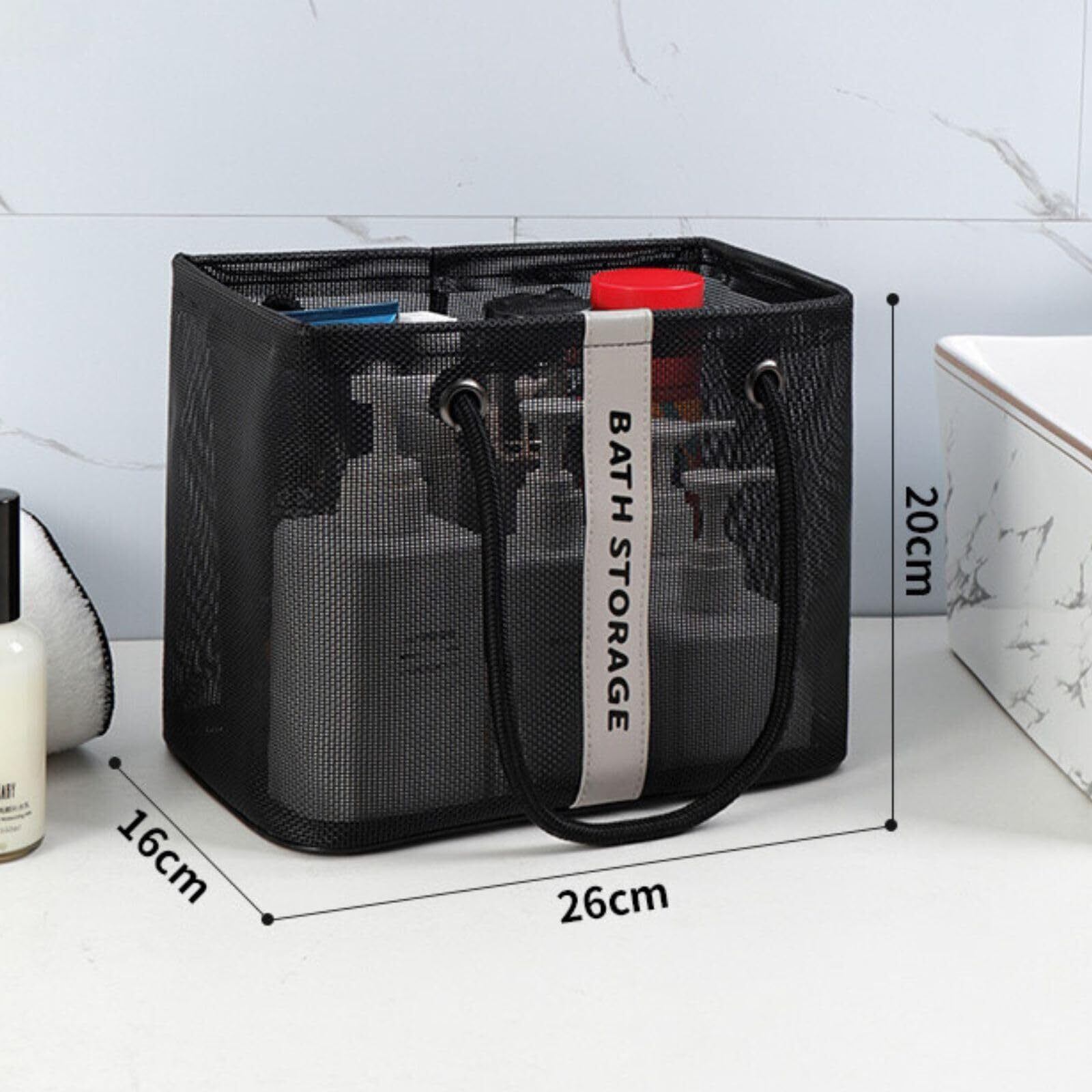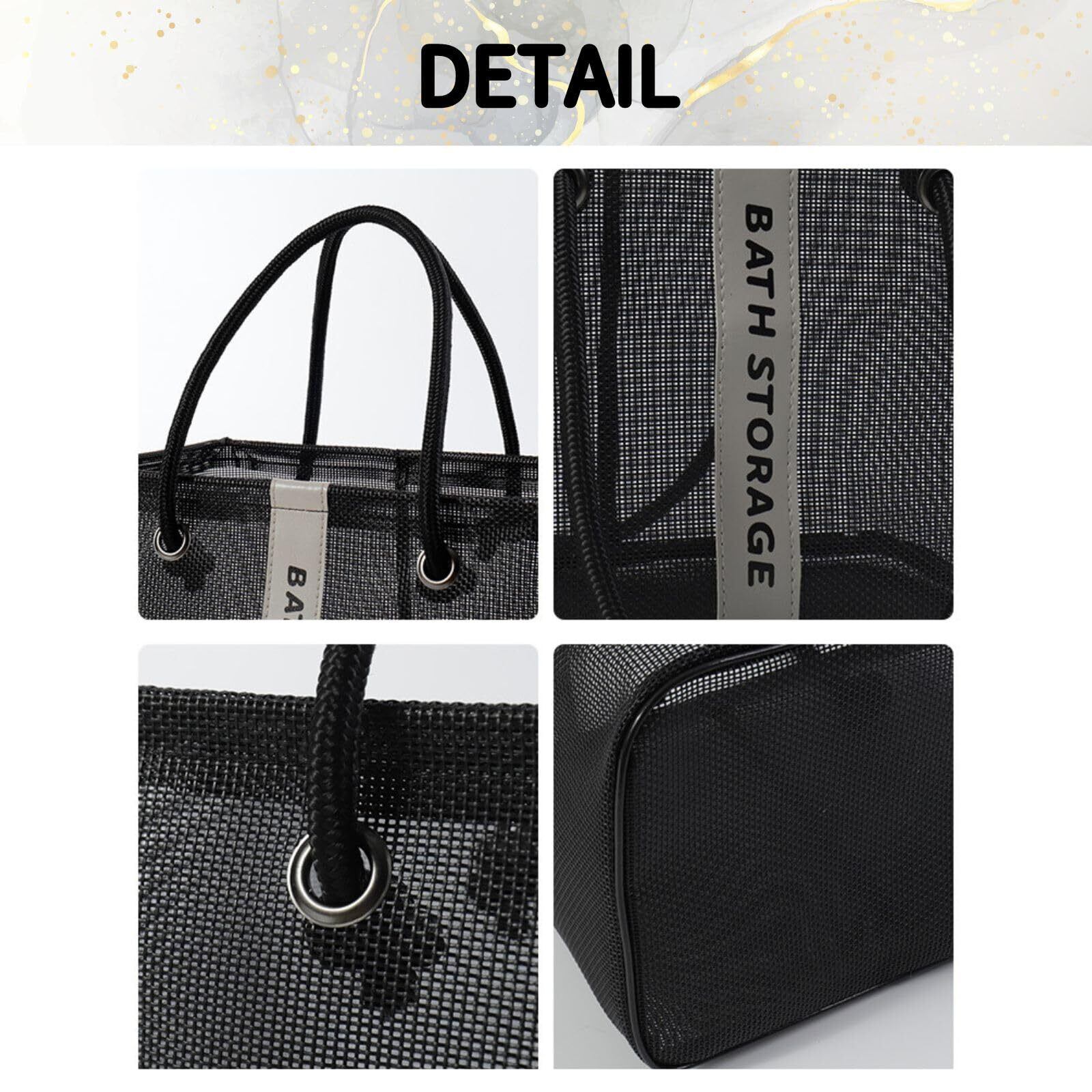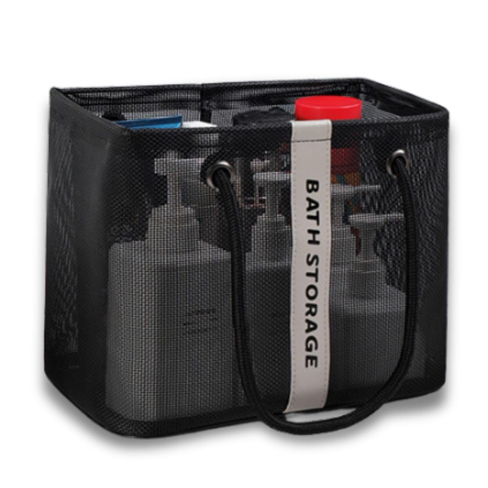 バッグ 温泉 バス プール サウナ 銭湯 風呂 スパ ジム 海水浴 ビーチ トラベル 旅行 アウトドア レジャー トート かばん 手提げ メッシュ 網 バスグッズ 洗面用具 ポータブル (ブラック)