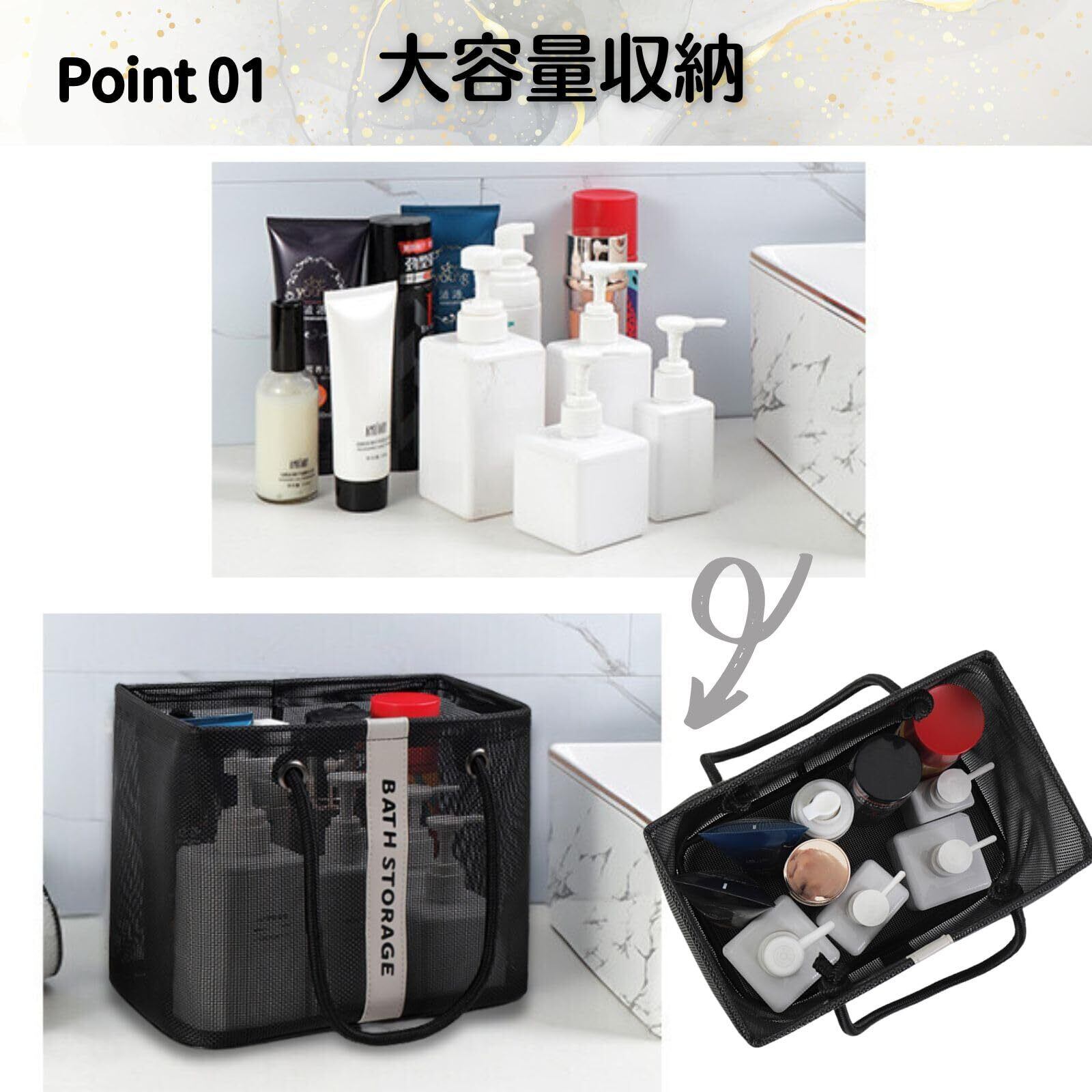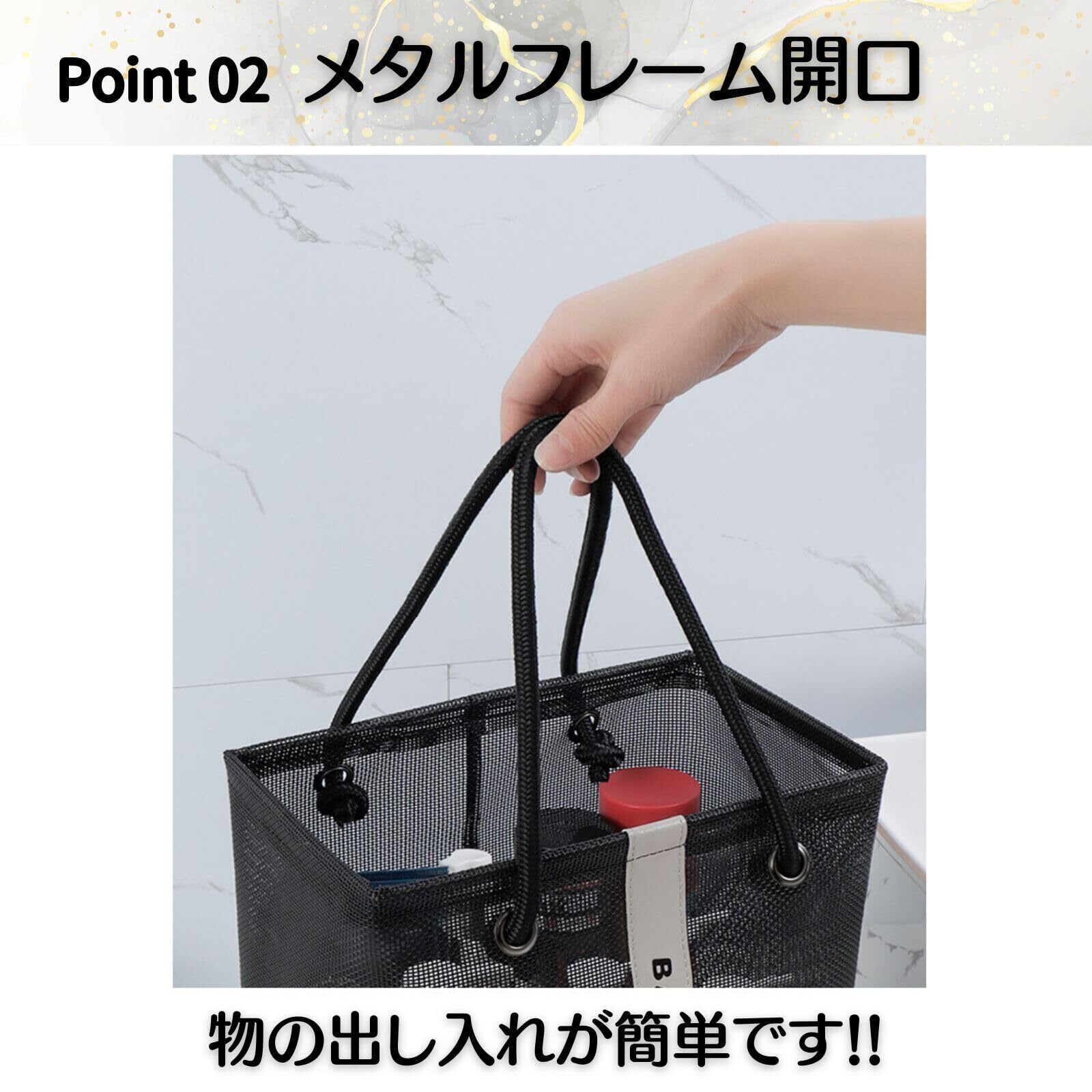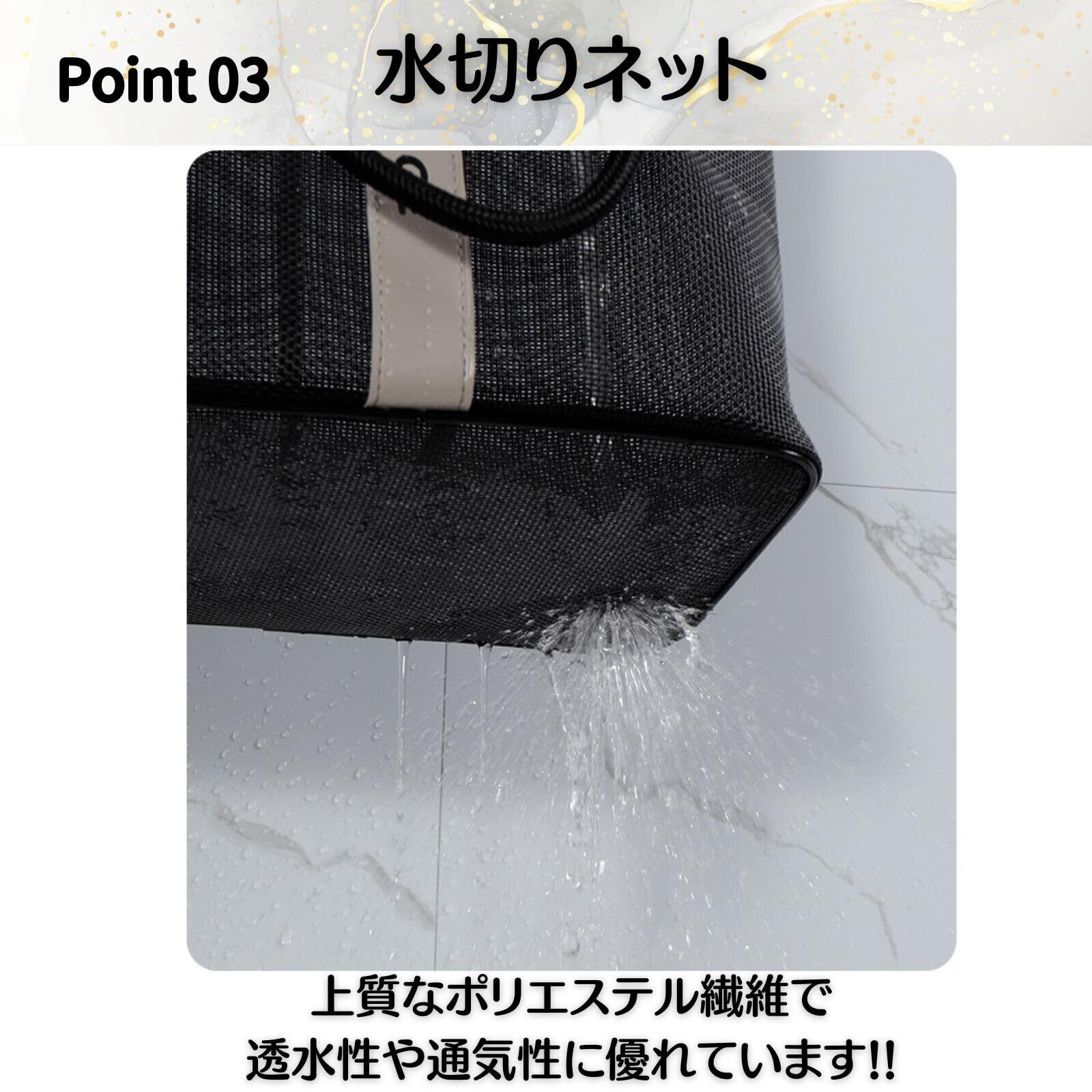 バッグ 温泉 バス プール サウナ 銭湯 風呂 スパ ジム 海水浴 ビーチ トラベル 旅行 アウトドア レジャー トート かばん 手提げ メッシュ 網 バスグッズ 洗面用具 ポータブル (ブラック)