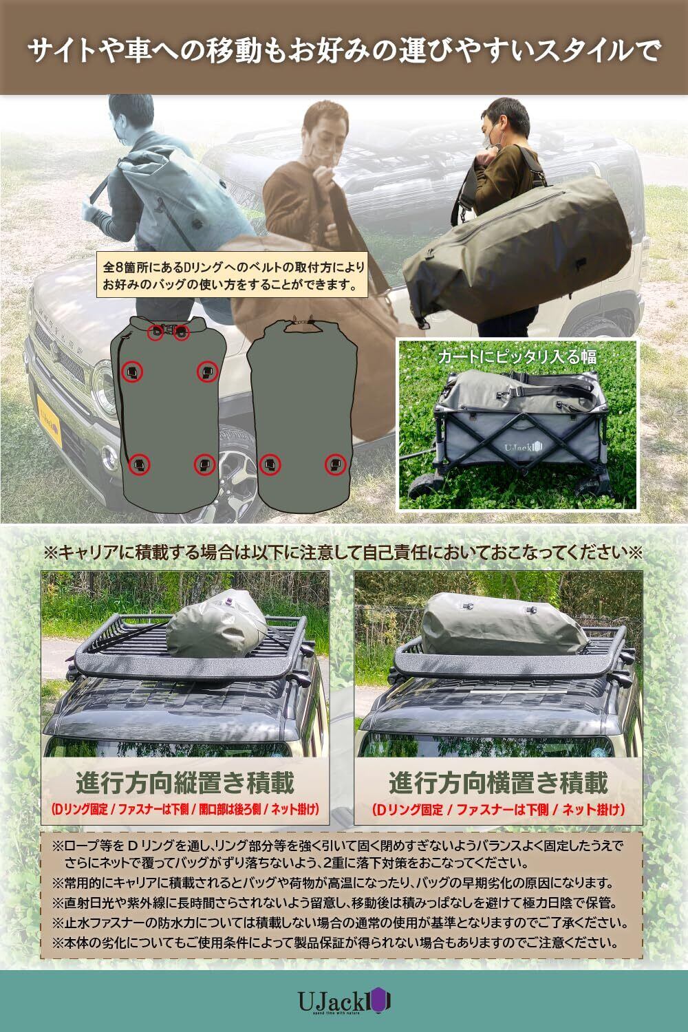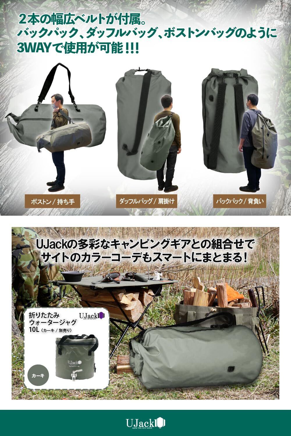 UJack(ユージャック) ドライバッグ 3WAY 110L 特大 防水バッグ アウトドア ダッフルバッグ