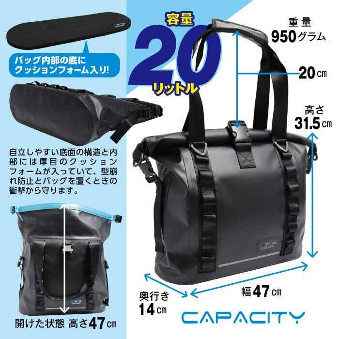 容量20リットルの頼れる!完全防水トートバッグ。