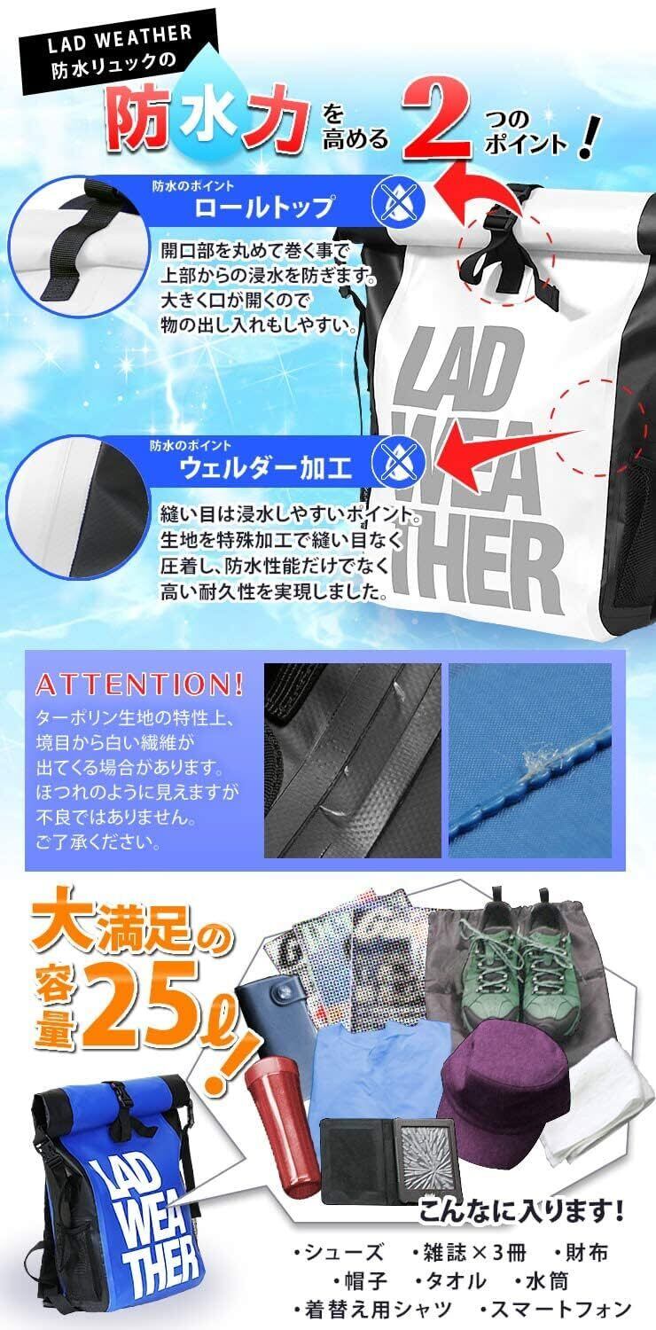[ラドウェザー] 防水バッグ 完全防水 リュック 25L メンズ スポーツバッグ