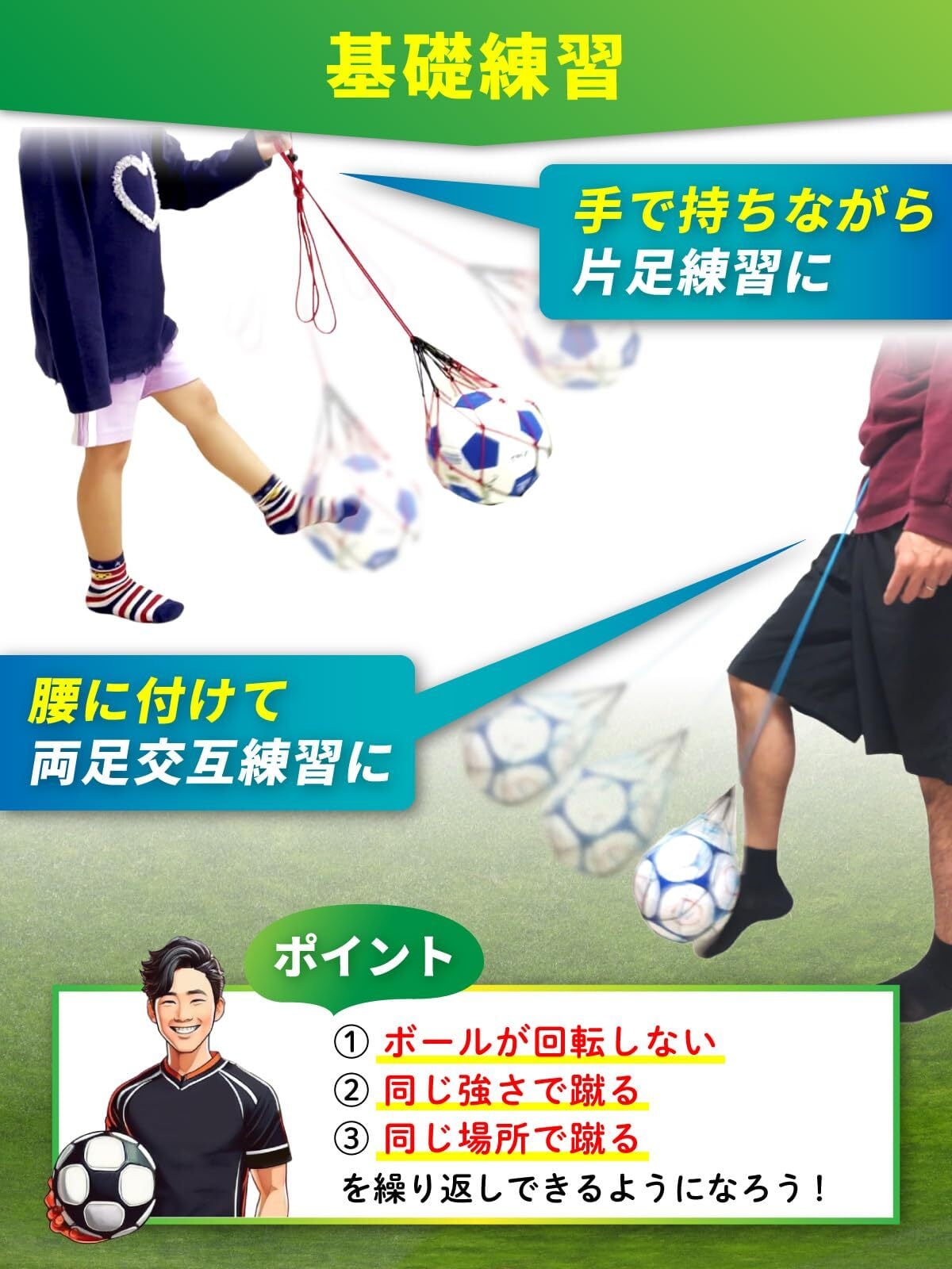 【多機能サッカーボールネット】ただボールを入れて運ぶだけじゃない!ボールコントロールの基礎技術向上・ボールに触れる機会を増やせる・安全な持ち運びもできるボールネットです!