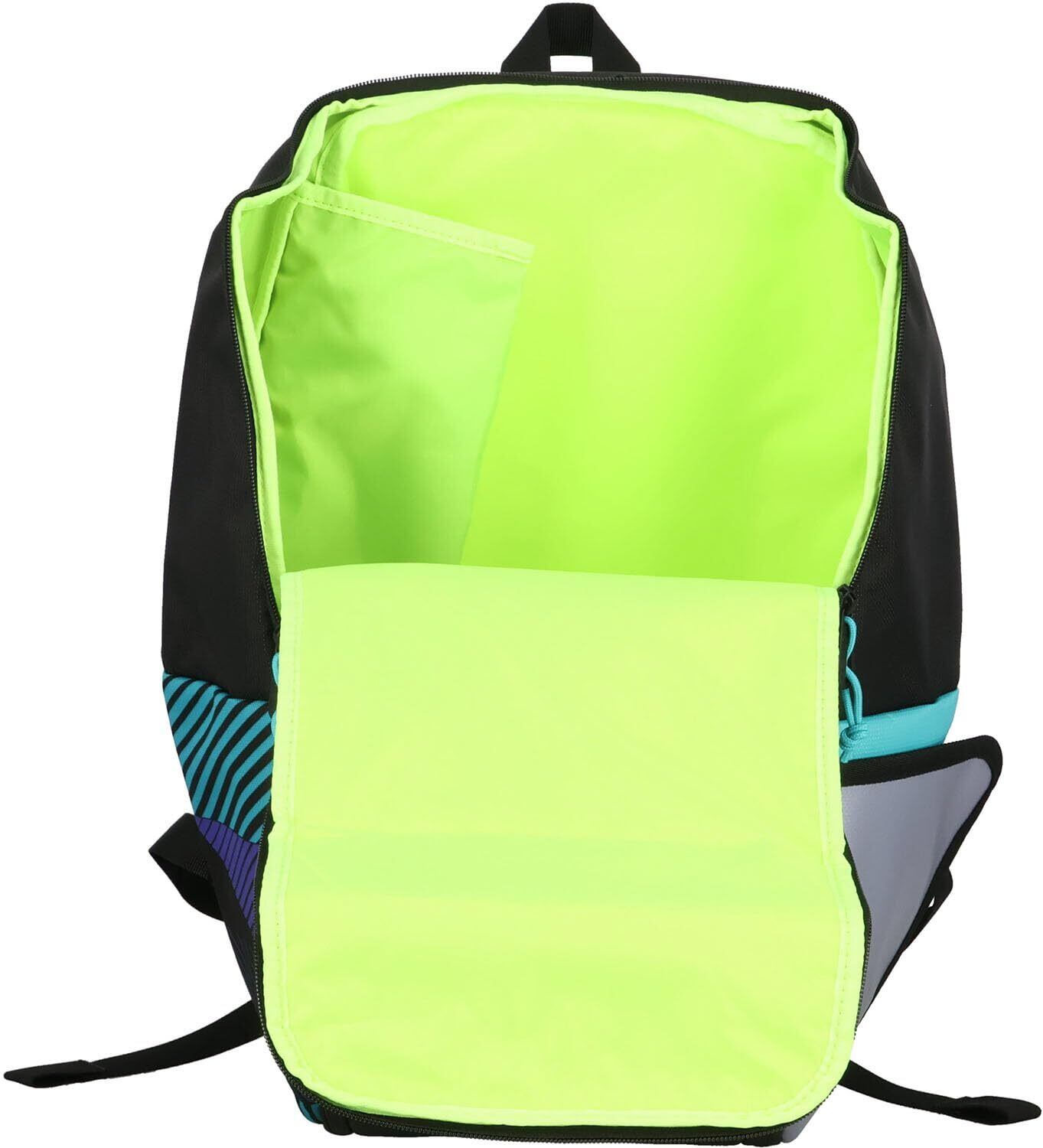 貴重品ポケット、シューズポケット、500mlペットボトル収納ポケット、ラケット2本収納部屋、YKKファスナー