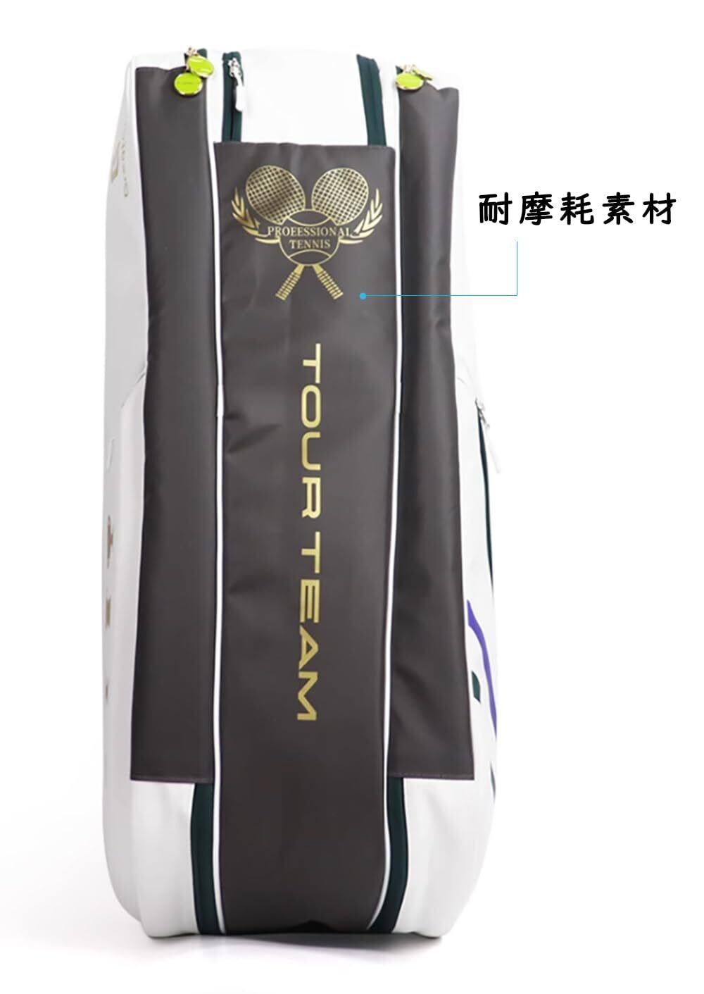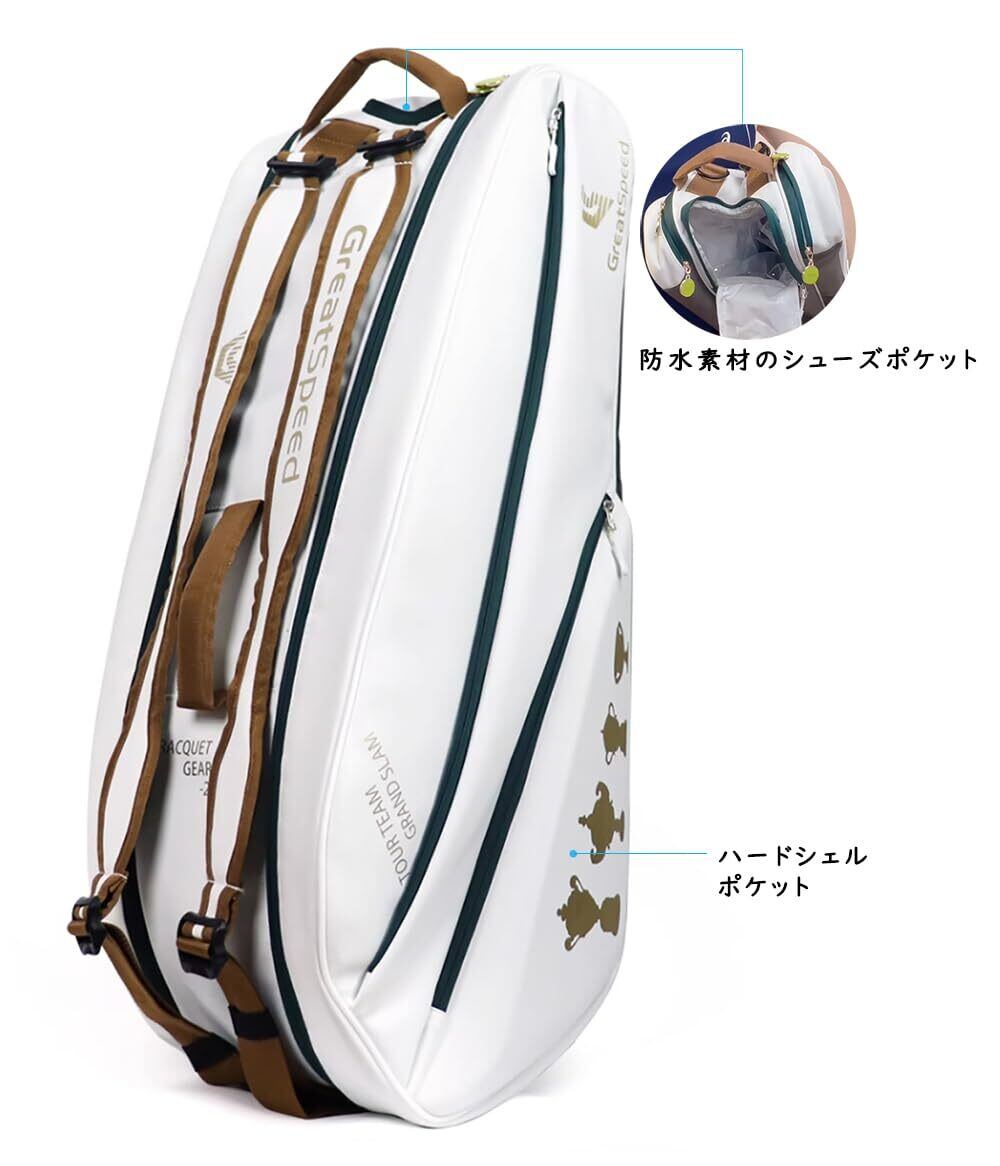 【考え抜かれたデザイン】ラケットバッグの底のダークカラー部分は耐摩耗性素材でできており、バッグ全体の寿命を向上させています。 シューズバッグは完全防水で、直接水で洗うことができます。 両肩でも片肩でも背負うことができます。