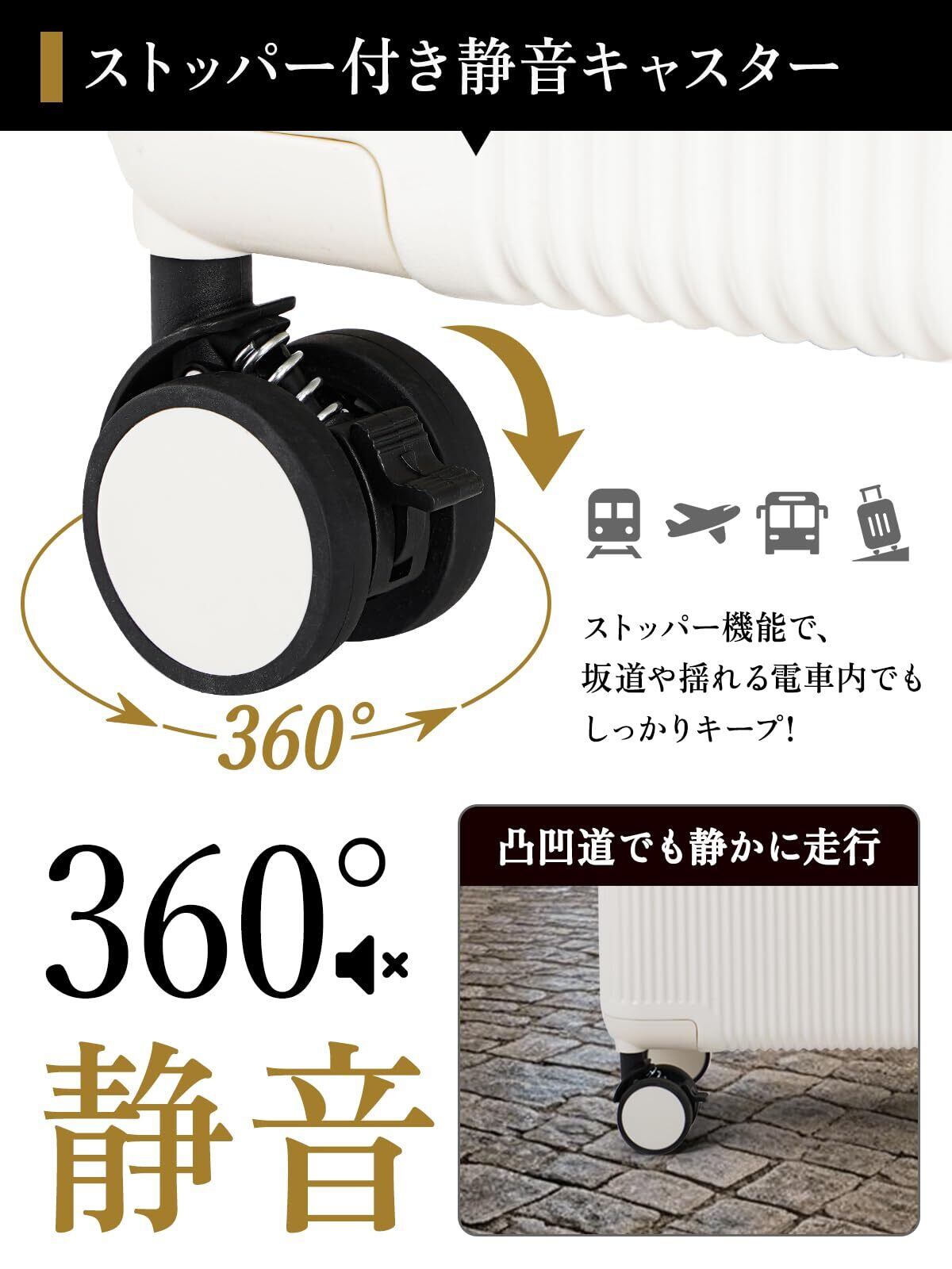 【スーツケース 機内持ち込み・多段調節キャリバー&静音360度回転キャスター】ボールベアリング搭載のダブルホイールは、摩擦を軽減しスムーズな回転と安定性を保ちながら滑らかな動きで操作性は優秀です。また、アルミ合金製の伸縮ハンドルの位置をシームレスに調整でき、さまざまな体格の人に使いやすいスーツケース。さらに、使用時の音量は小さく、静音性に優れています。ガタガタした道でもこれといって負担なく動かすことができます。