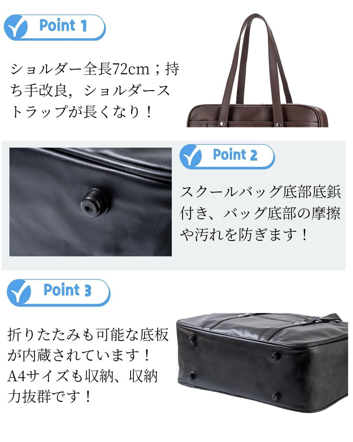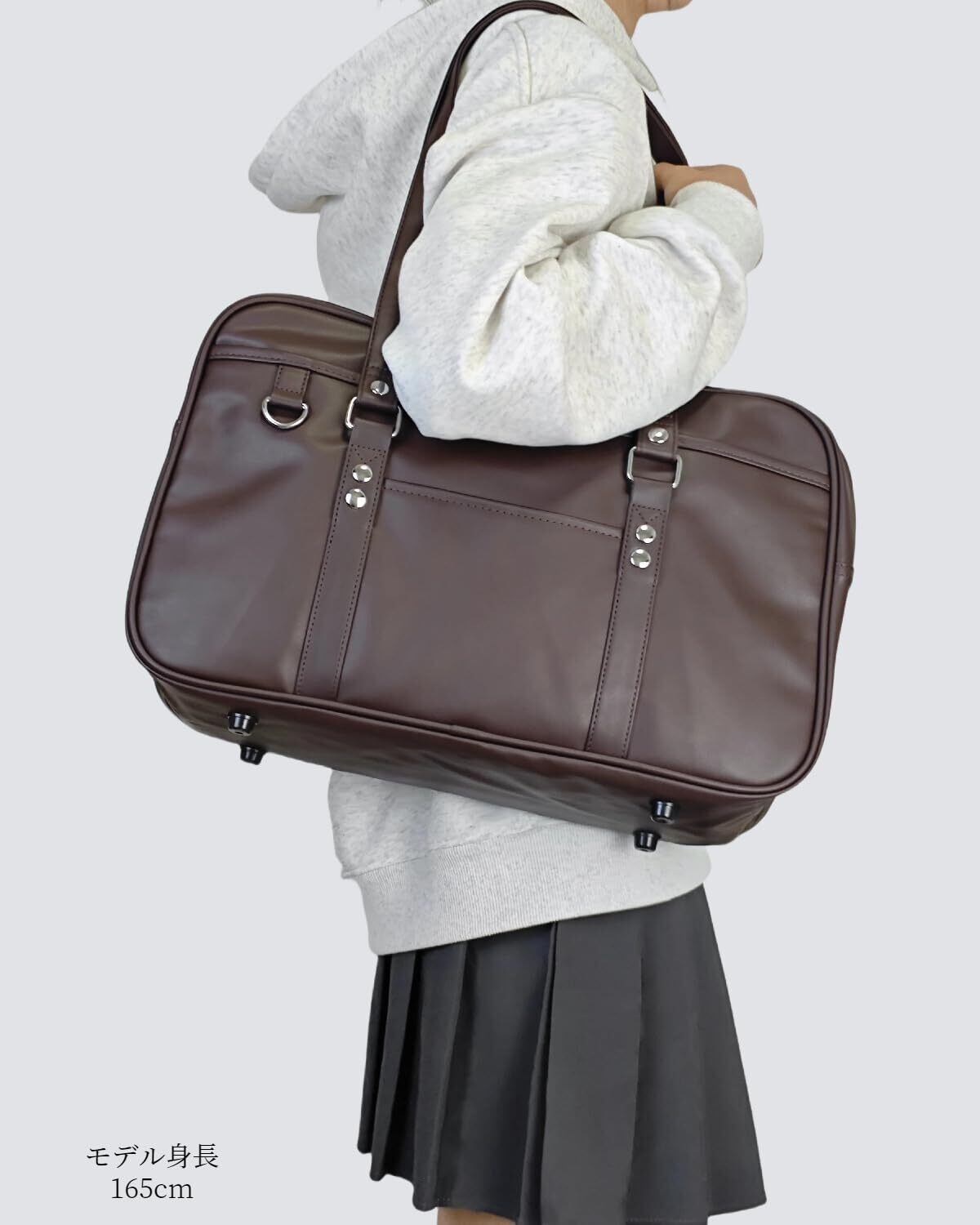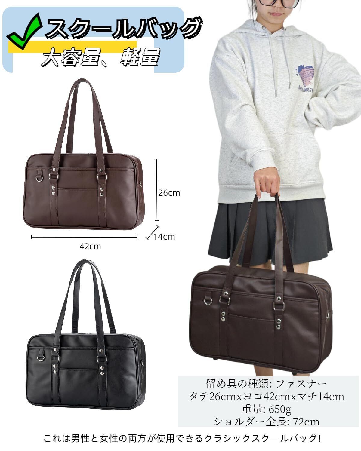 [Osteenii] スクールバッグ 合皮 スクバ 女子 高校生 学生 JK 制服 鞄 PU 大容量 茶色 黒 通学
