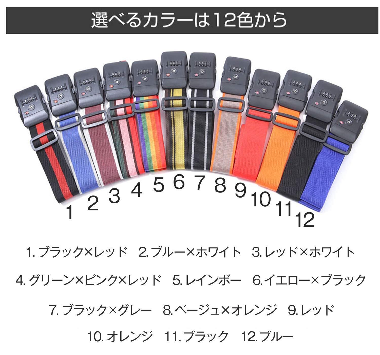 【選べる12カラー】色とりどりの12色から選べるカラーバリエーション。単色やレインボーなど、好みに合わせてお選びいただけます。同じような形や色のスーツケースが連なっていると自分のスーツケースを見つけにくいですが、目立つ色のスーツケースベルトをつけておくことで目印になるだけでなく、盗難防止や防犯などにも繋がります。