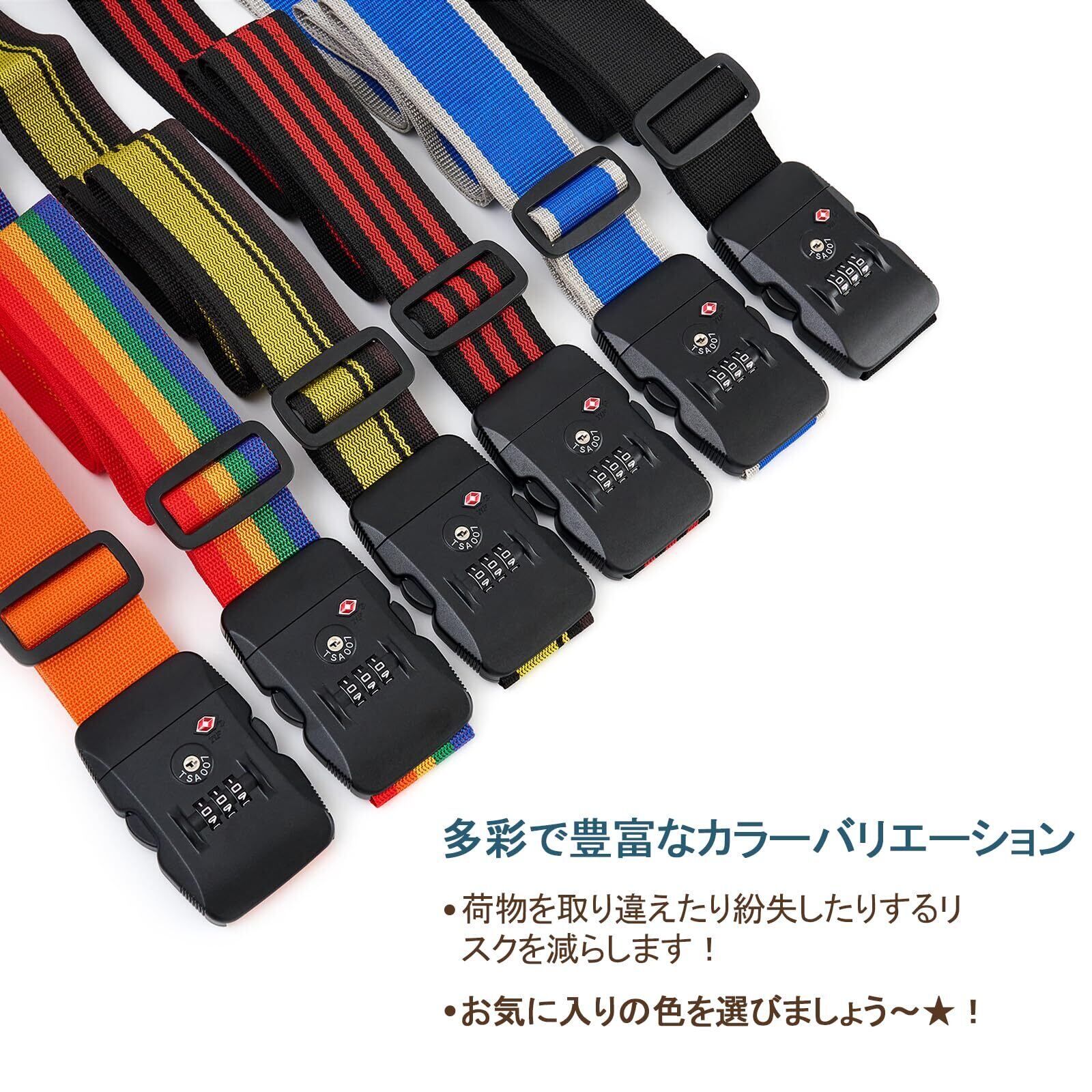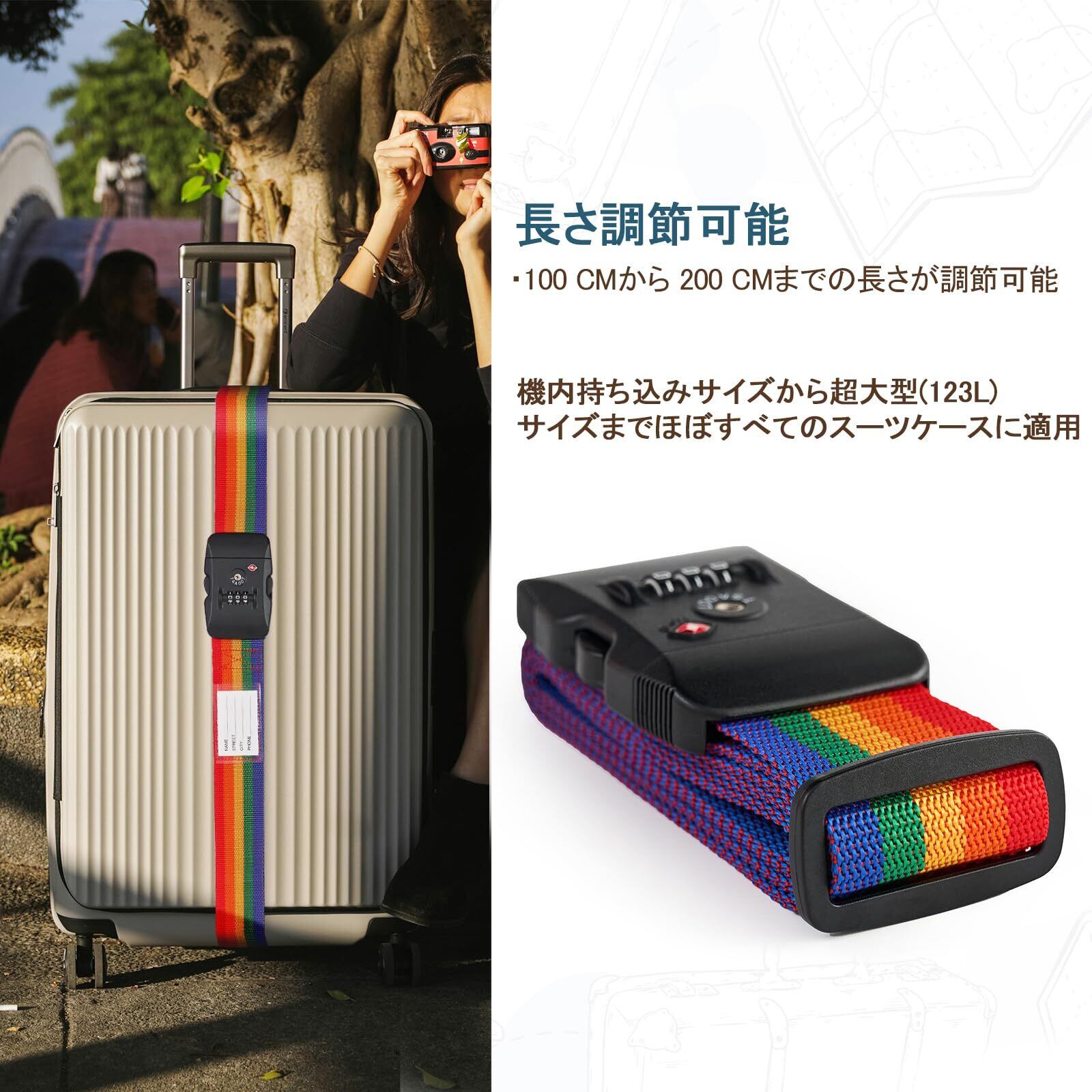 【2022最新】MiyabiLife スーツケースベルト TSAロック付き キャリーケース ベルト 荷崩れ防止バンド 旅行 出張用 3桁ダイヤル式 荷物固定ベルト 長さ調節可能 軽量 盗難・紛失防止 (レインボー) | 無意味ステッカー