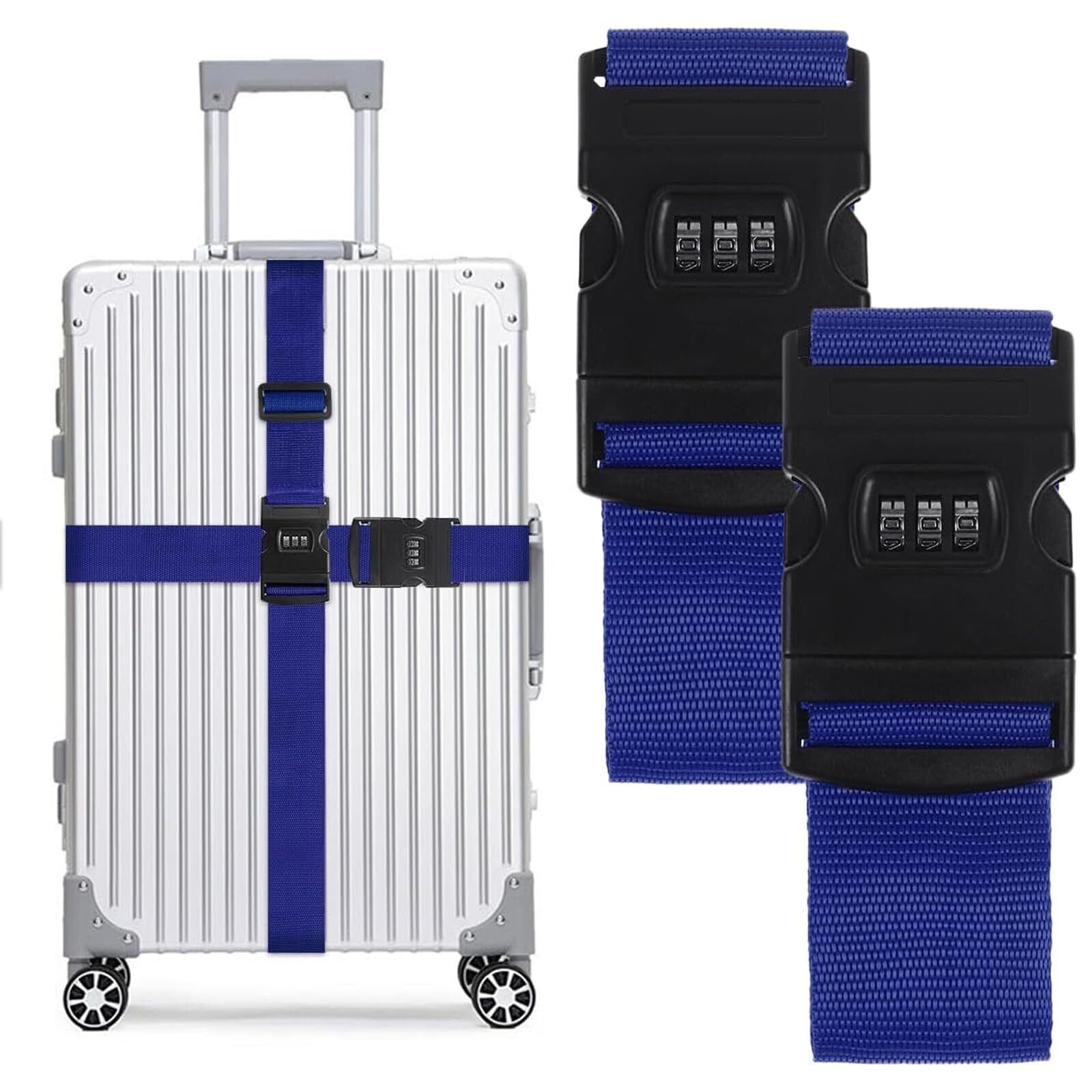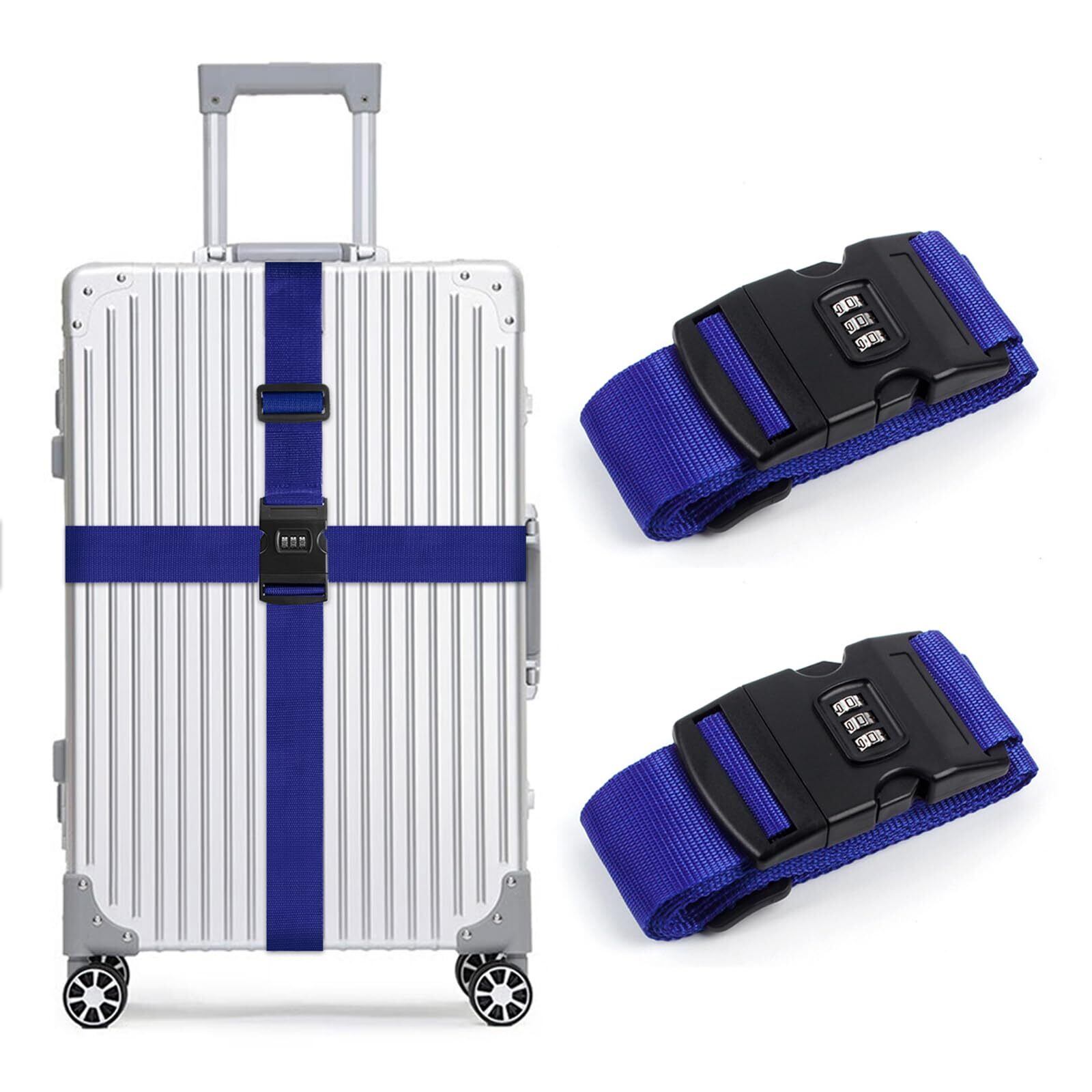T Tersely キャリーケースバンド 荷締め用ストラップ ナイロン製 ステンレス鋼バックル 2本セット ブルー