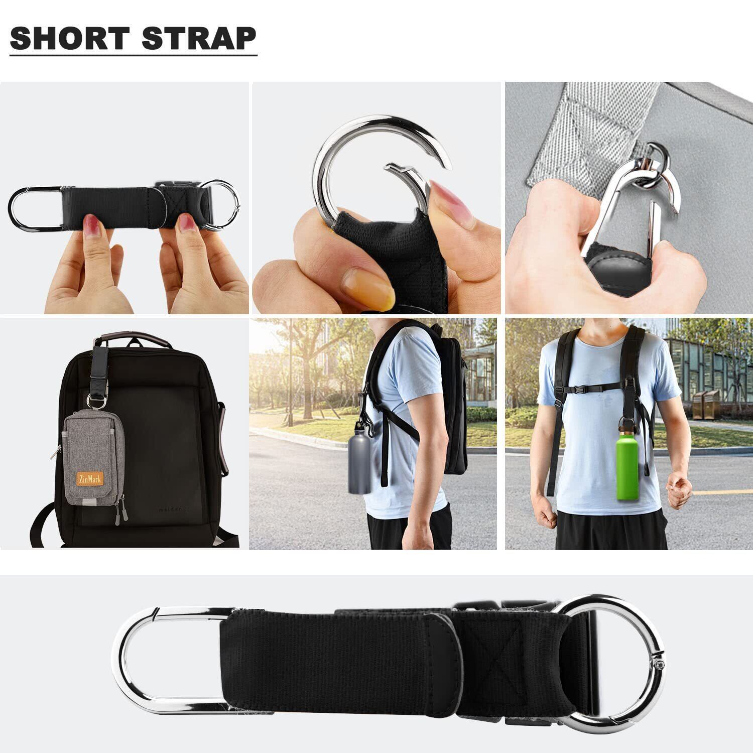 ベルクロとバックルとフックを備えたナイロンとポリエステルで作られた伸縮性ストラップは、より機能的で実用的です。ベルトは、ベビーカーのアームレストや別のバッグハンドルにバッグや荷物を固定するように調整できます。