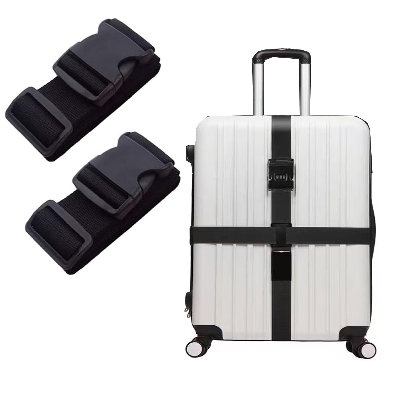 KQHOMEI ースベルト ワンタッチ式 スーツケ 荷物固定 調節可能 荷崩れ防止 紛失防止 高弾性スーツケース留めベルト 旅行便利グッズ 高視認性 8色 (ブラック)