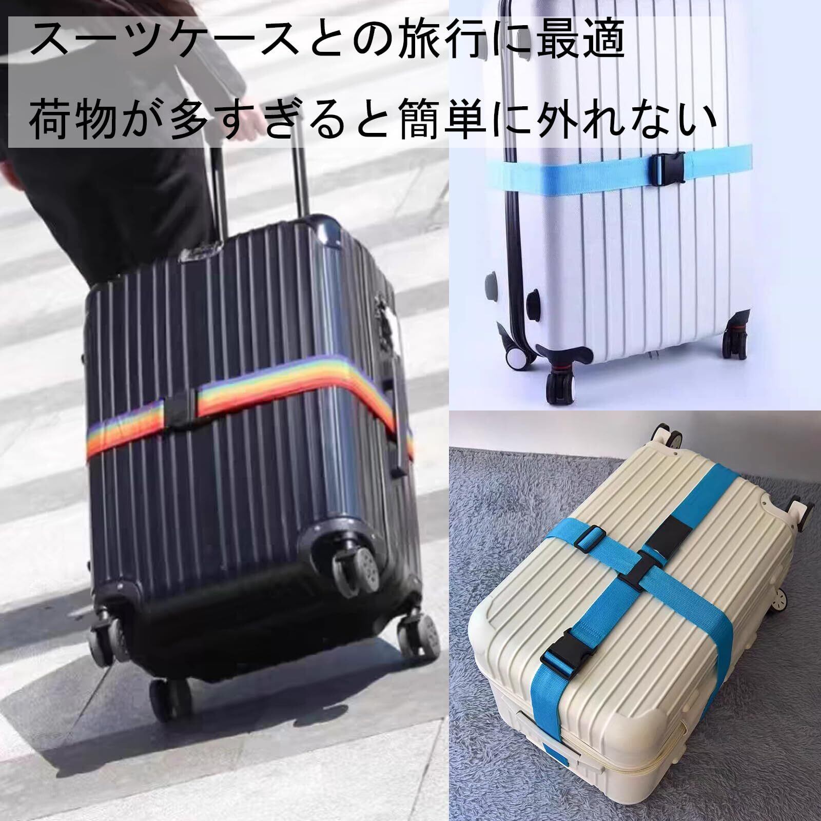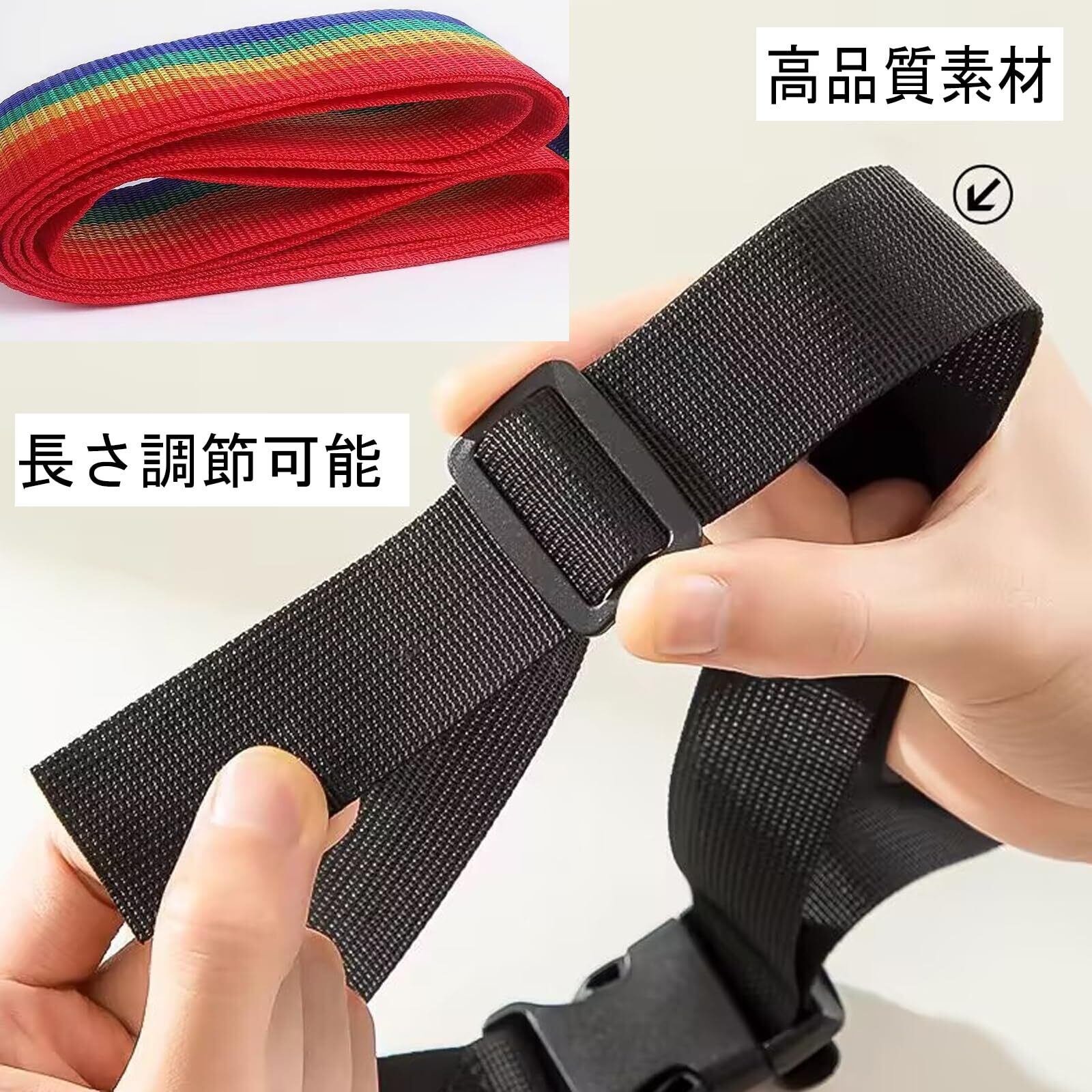 【耐久性】耐摩耗性に優れたストラップは切れにくく、長くお使いいただけます。また、金属パーツを使用していないため、商品に傷がつきにくくなっています。ハードな取り扱いに耐えられるスーツケースベルトは不慮の開口部から飛び出す荷物を保護し輸送途中の安全を保ちます。