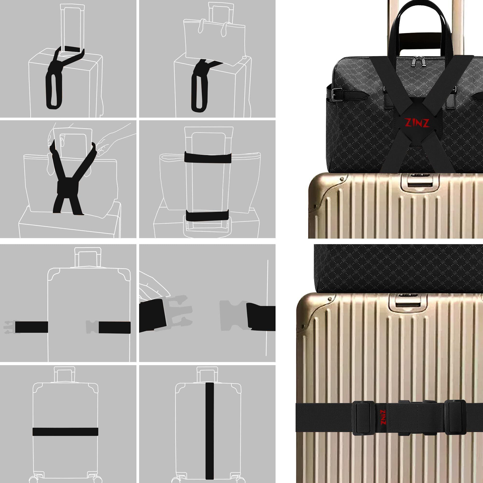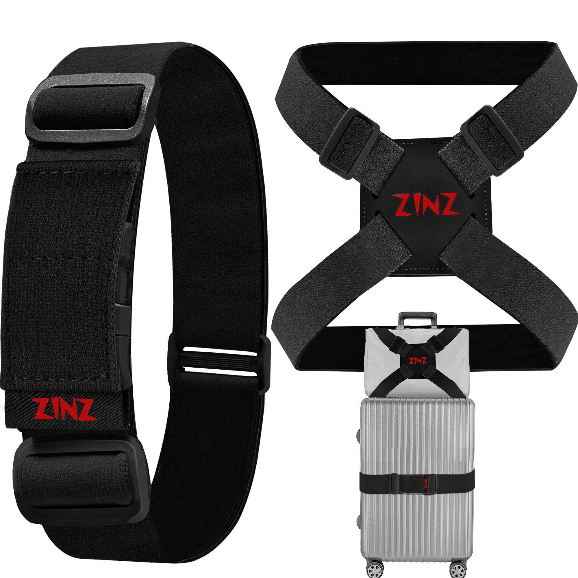 ZINZ 旅行便利グッズ バッグとめるベルト 多用 調整可能 軽量 荷物用弾力固定ベルト ずり落ち防止 ,黒赤セット