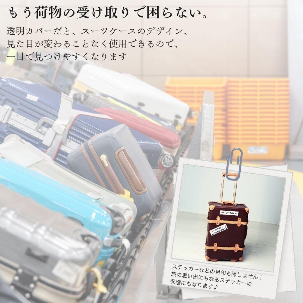スーツケースのデザインやお気に入りのステッカーを隠さずにおしゃれに使用することができるので、荷物の見分けやすさもそのままです